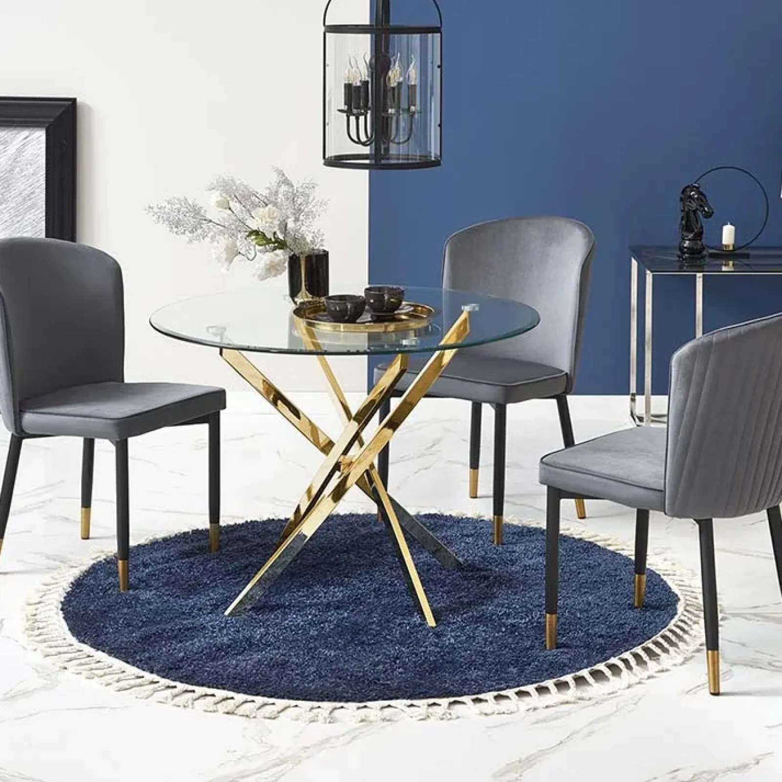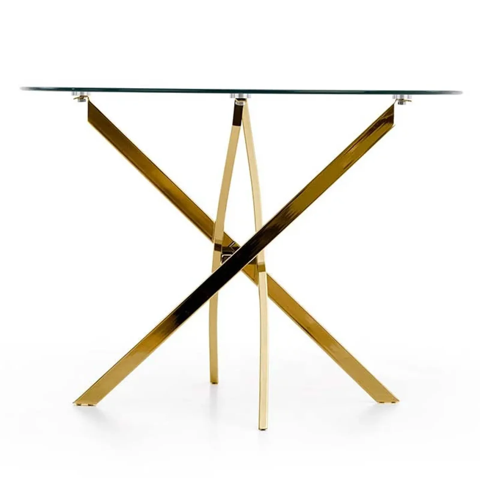 Tavolo rotondo in vetro 100x100cm acciaio oro cromato Minerva Gihome®: una proposta che è espressione di eleganza e contemporaneità. Conquisterà l’apprezzamento di chiunque lo osservi.