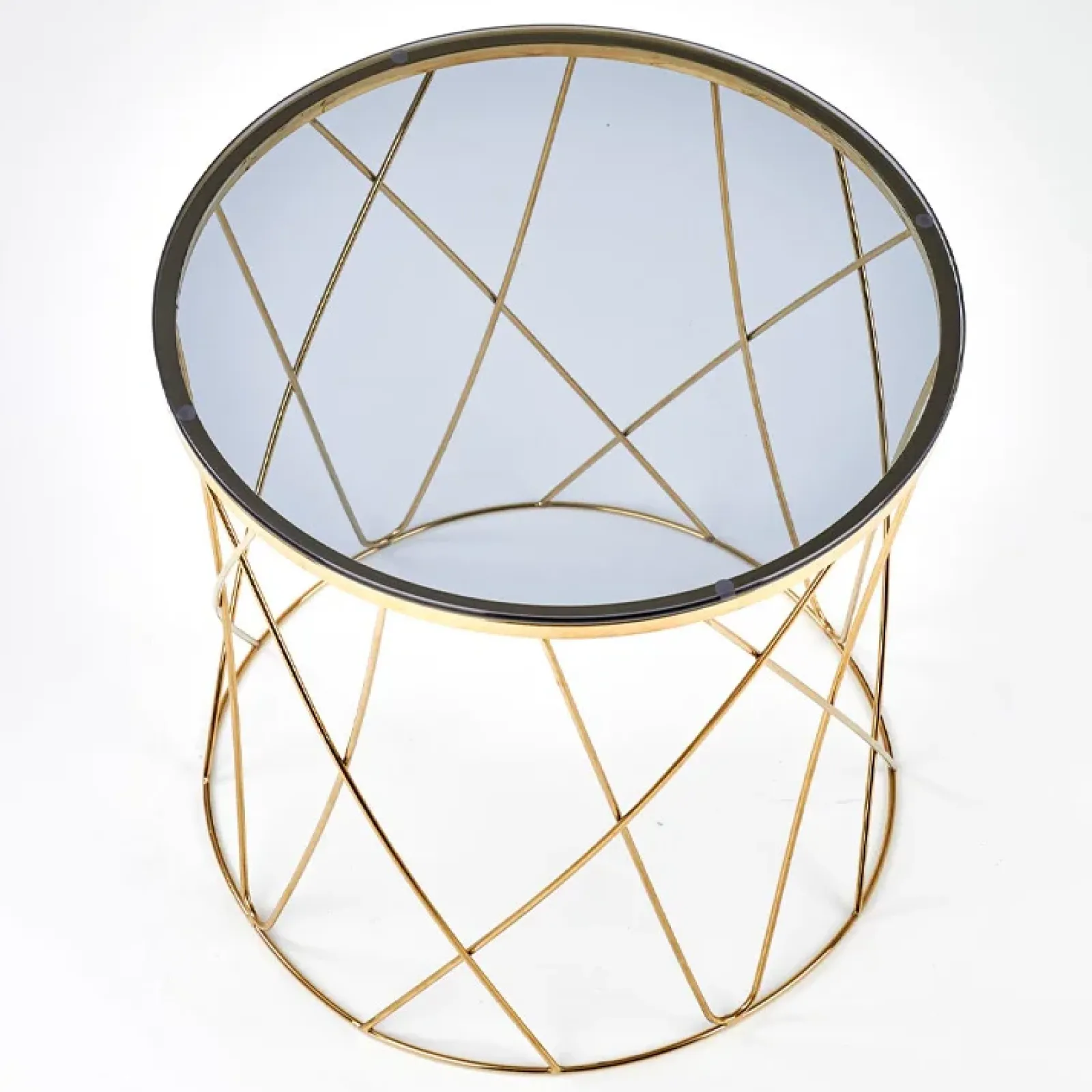Tavolino rotondo Lenus vetro fumè acciaio oro è una proposta dalle linee ricercate, perfetta per dare quel tocco in più al tuo salotto!