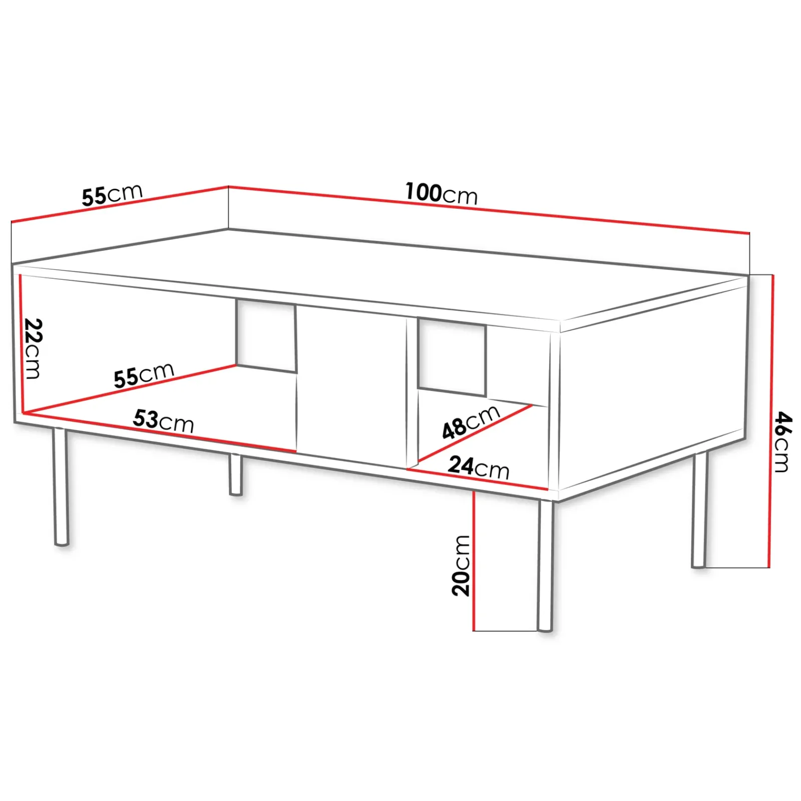 Tavolino da salotto 100x64cm con frontali decorati beige Daniele