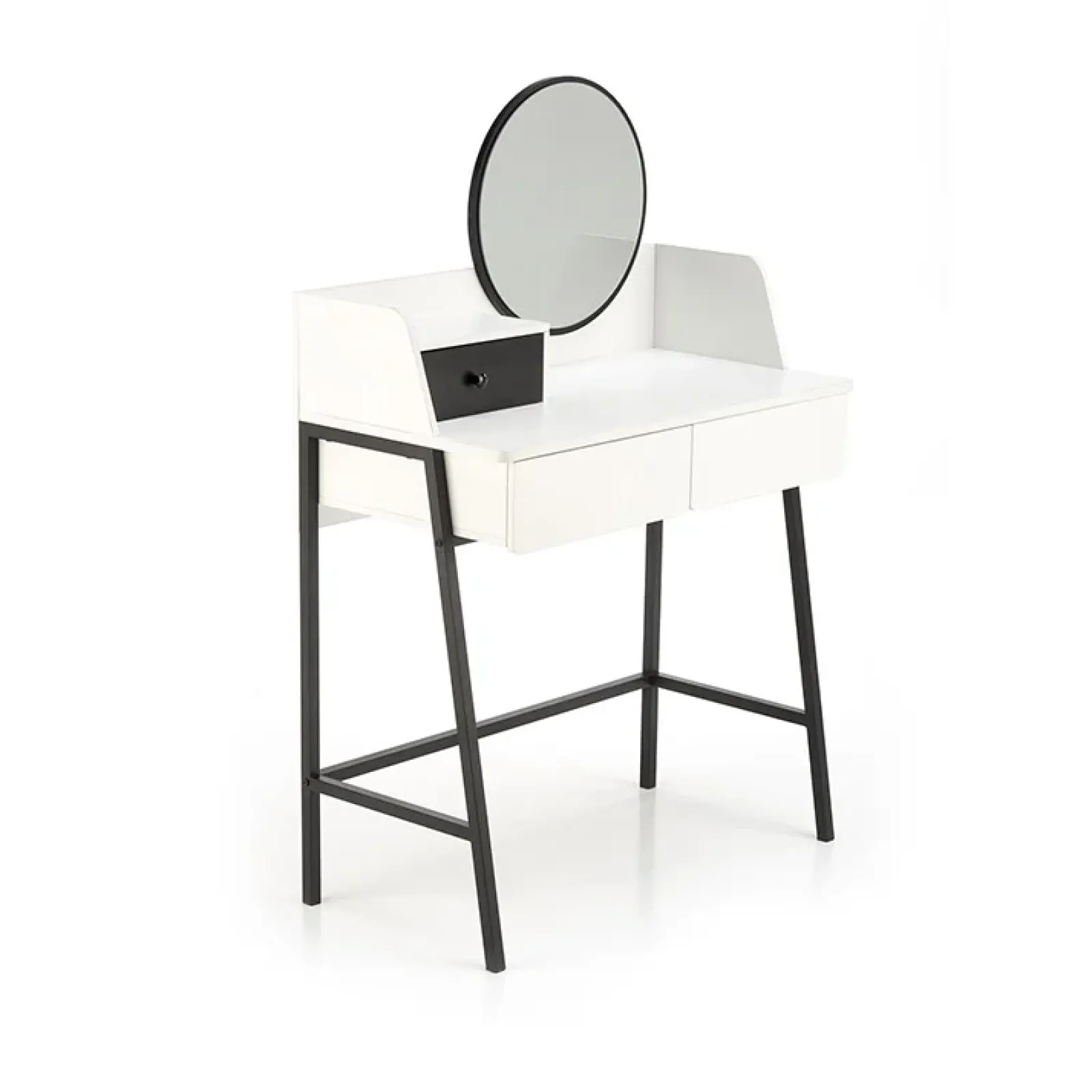 Toeletta da trucco con specchio 80x120cm bianco nero Miralda, grazie ai cassetti sottostanti e al porta oggetti laterale potrai mantenere la tua postazione sempre in ordine.