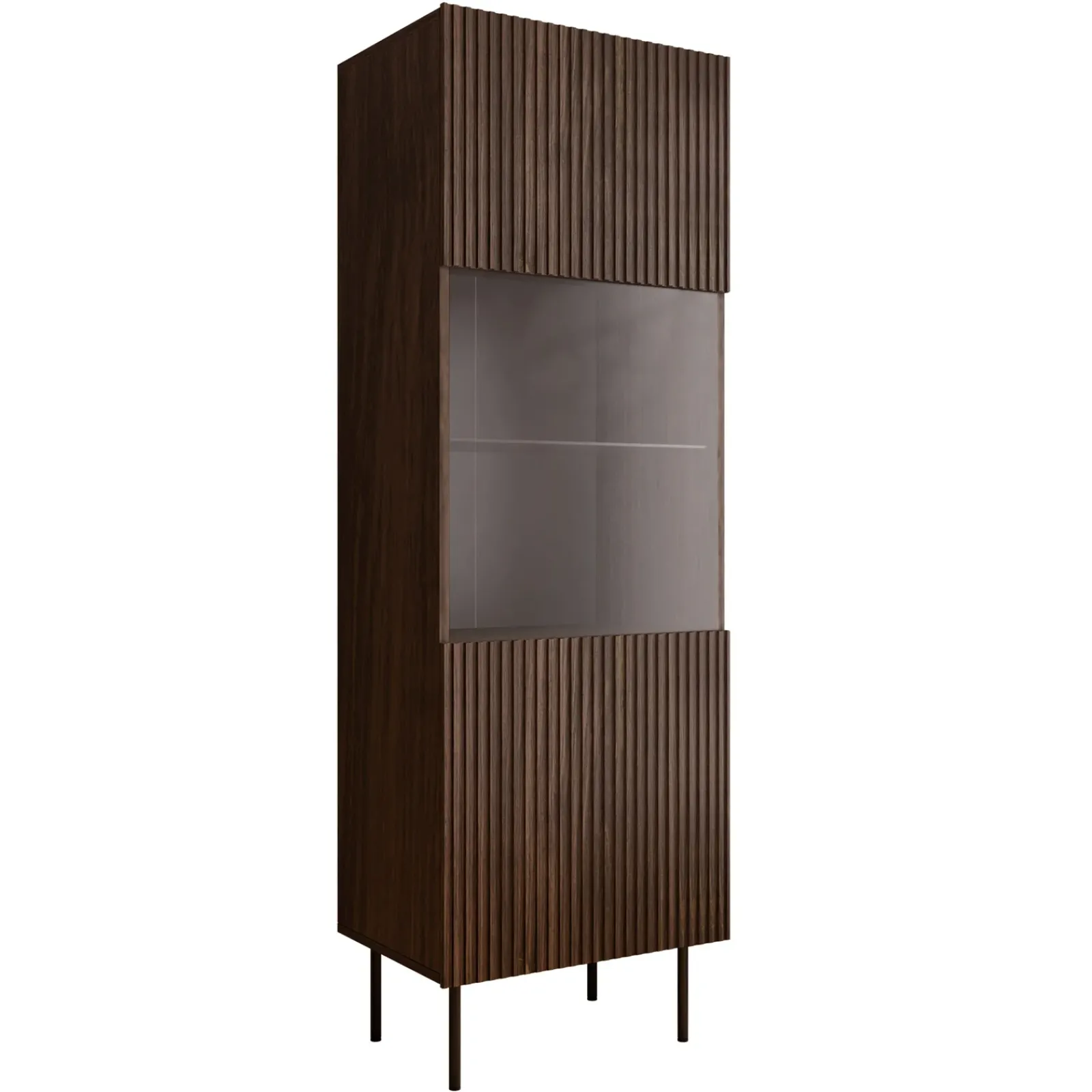 Vetrina alta 60x183cm 1 anta 2 vani a giorno noce cannettato Gabiot