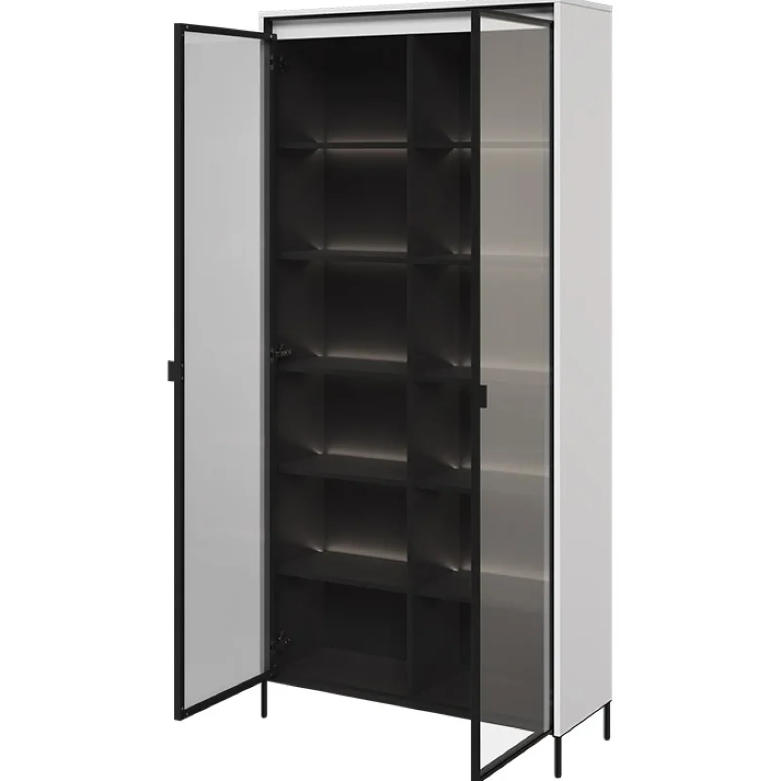 Vetrina alta 2 ante led 92x196cm bianco opaco nero Camelia