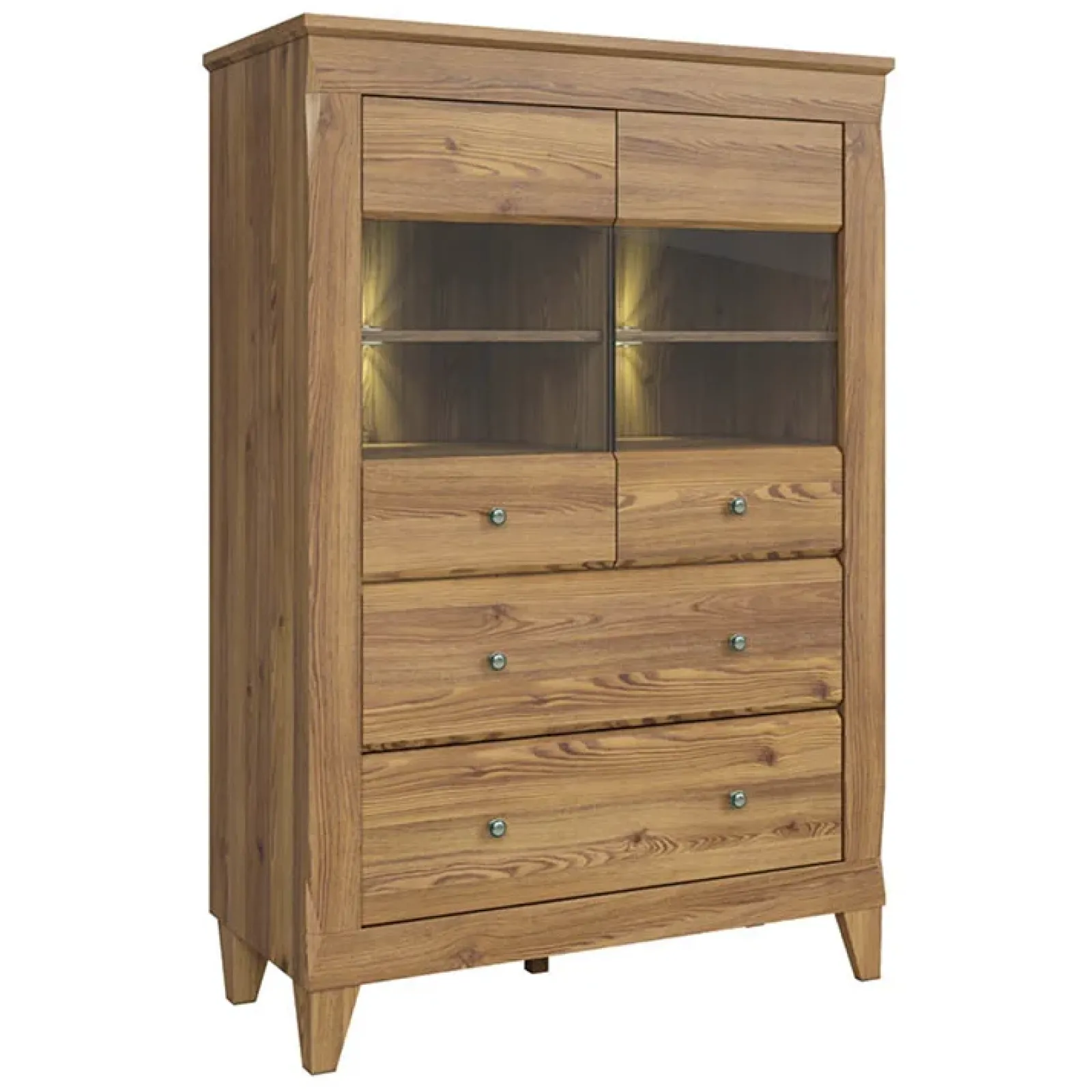 Vetrinetta 102x151cm 2 ante 4 cassetti rovere scuro Lucca: esponi con classe i tuoi averi!