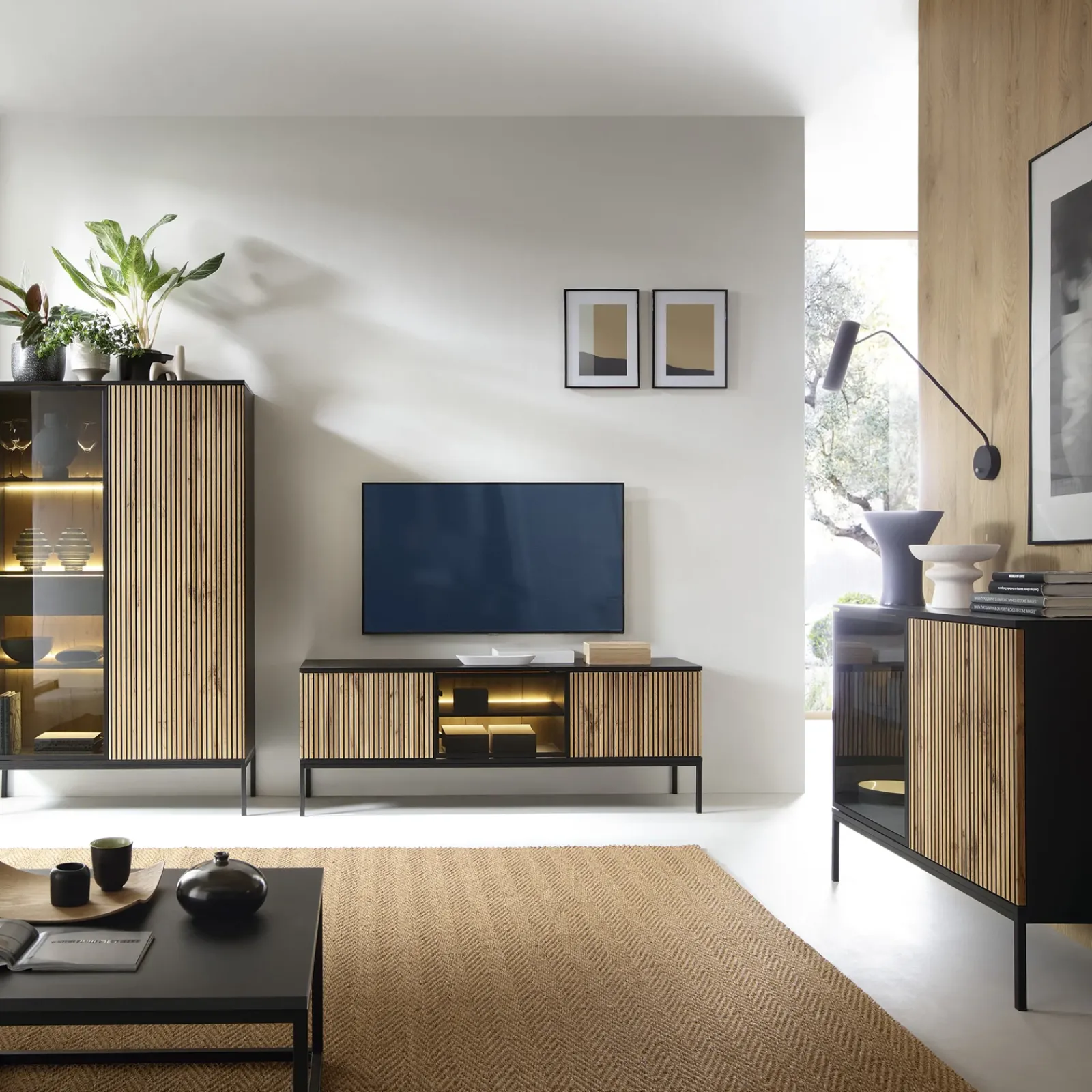 | Finitura | Rovere antico cannettato / Nero opaco / Vetro |