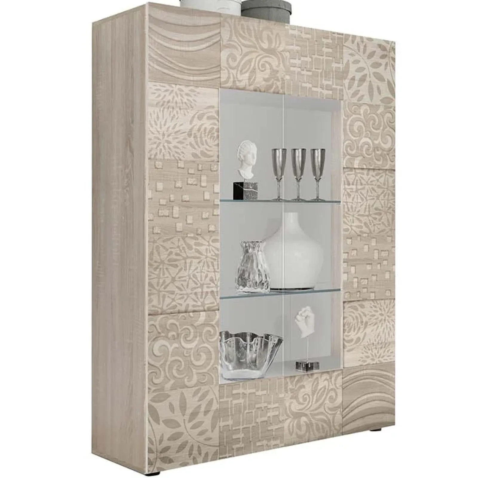 Garnero Arredamenti Vetrinette|Vetrinette-Vetrinetta 121x166h cm 2 ante moderna samoa serigrafato Paradise Rovere