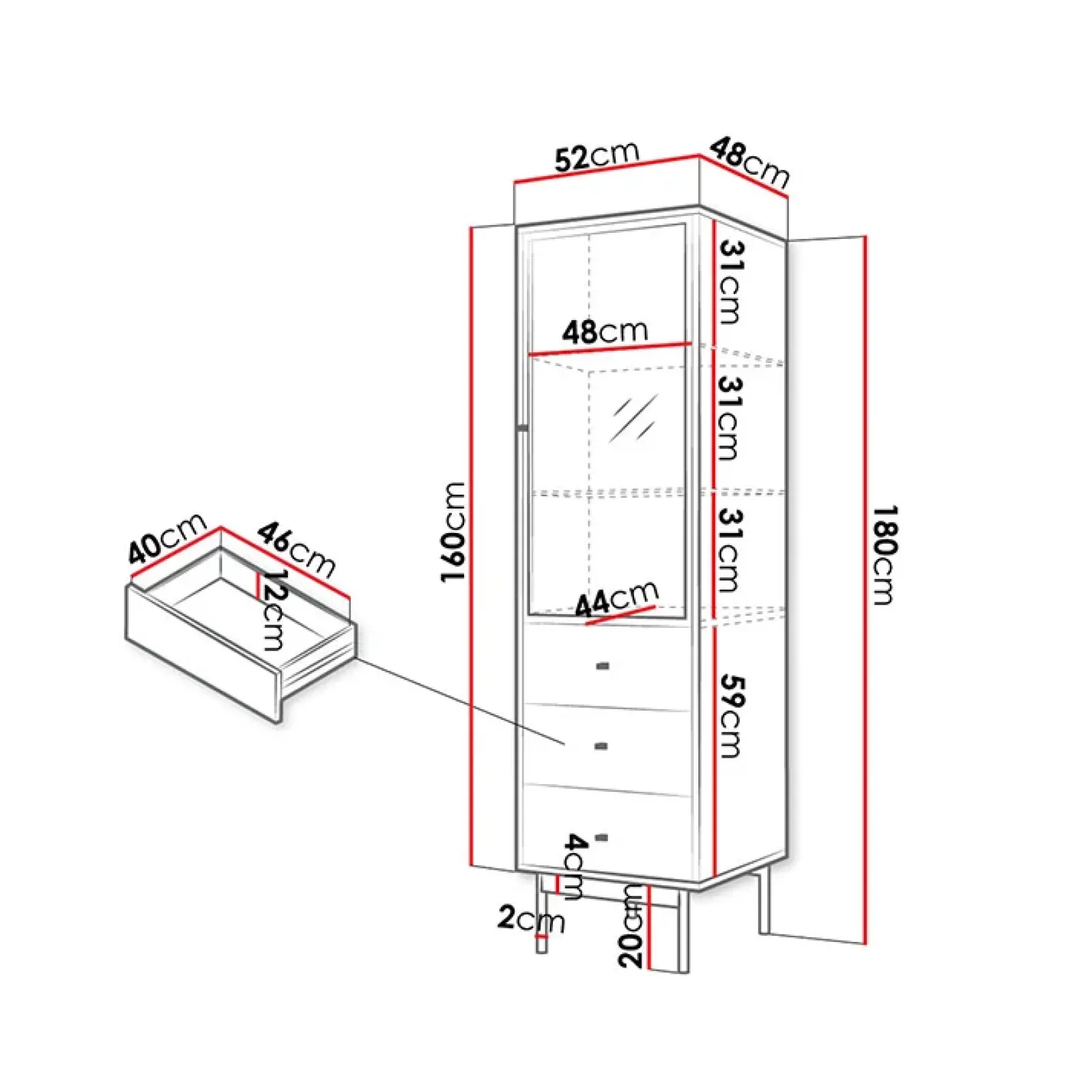 - dimensioni: L.52 x H.180 x P.48 cm