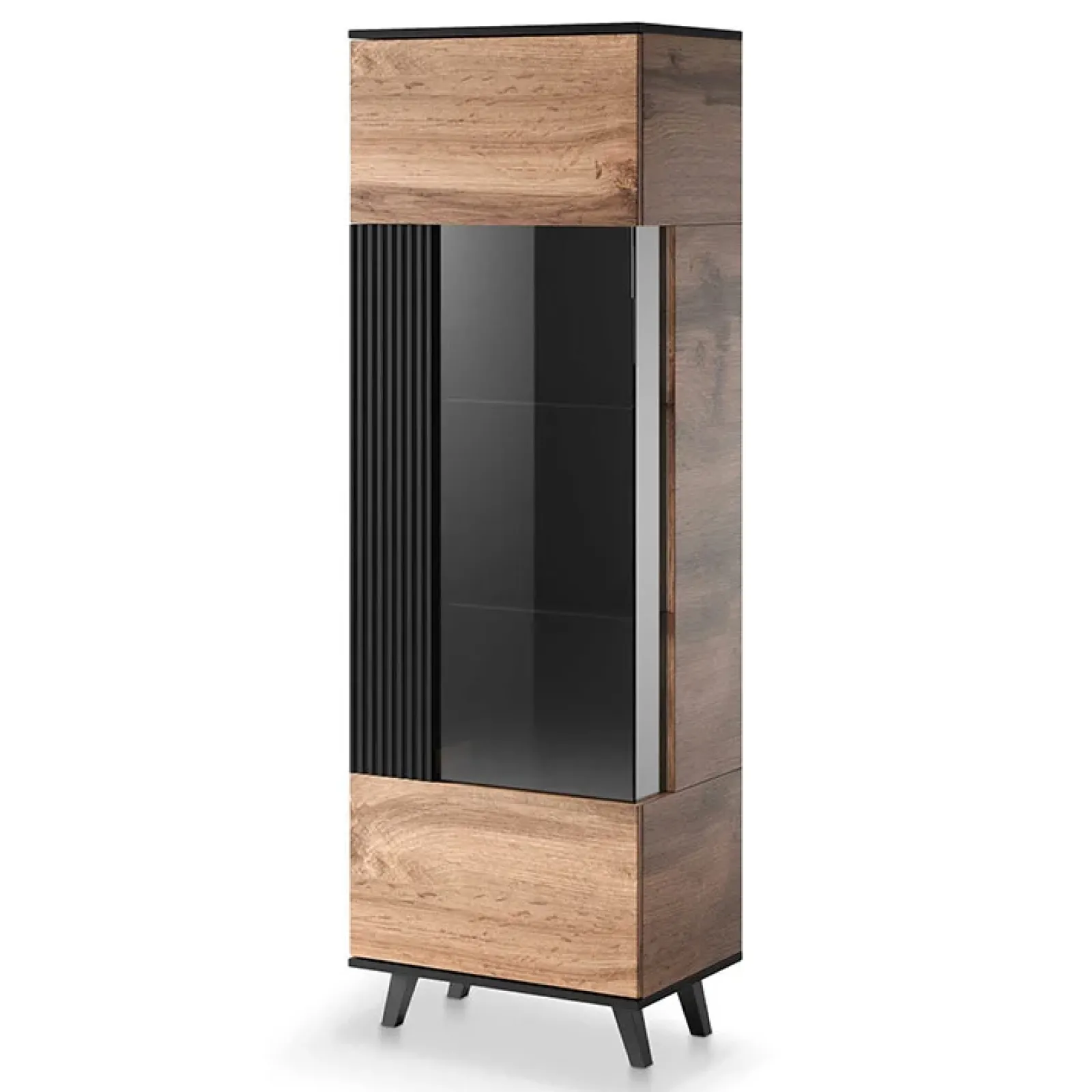 Garnero Arredamenti Vetrinette|Vetrinette-Vetrinetta 60x182h cm moderna industrial rovere nero Nandina