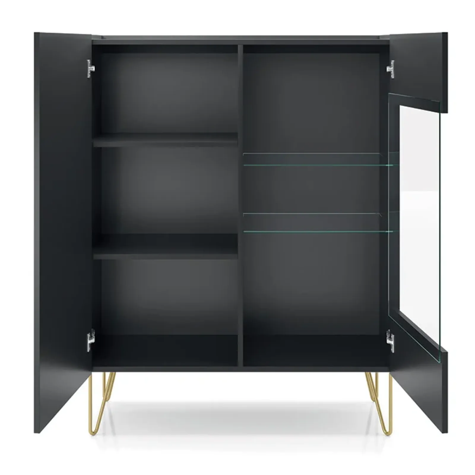 Dal colore nero si adatta a qualsiasi abitazione e anche a qualsiasi tipo di arredamento. É dotata di 2 ante battente e di 4 ripiani di cui 2 sono a vista grazie al vetro dell’anta. Questa soluzione è rialzata da terra grazie a comodi piedini per garantire una veloce pulizia.