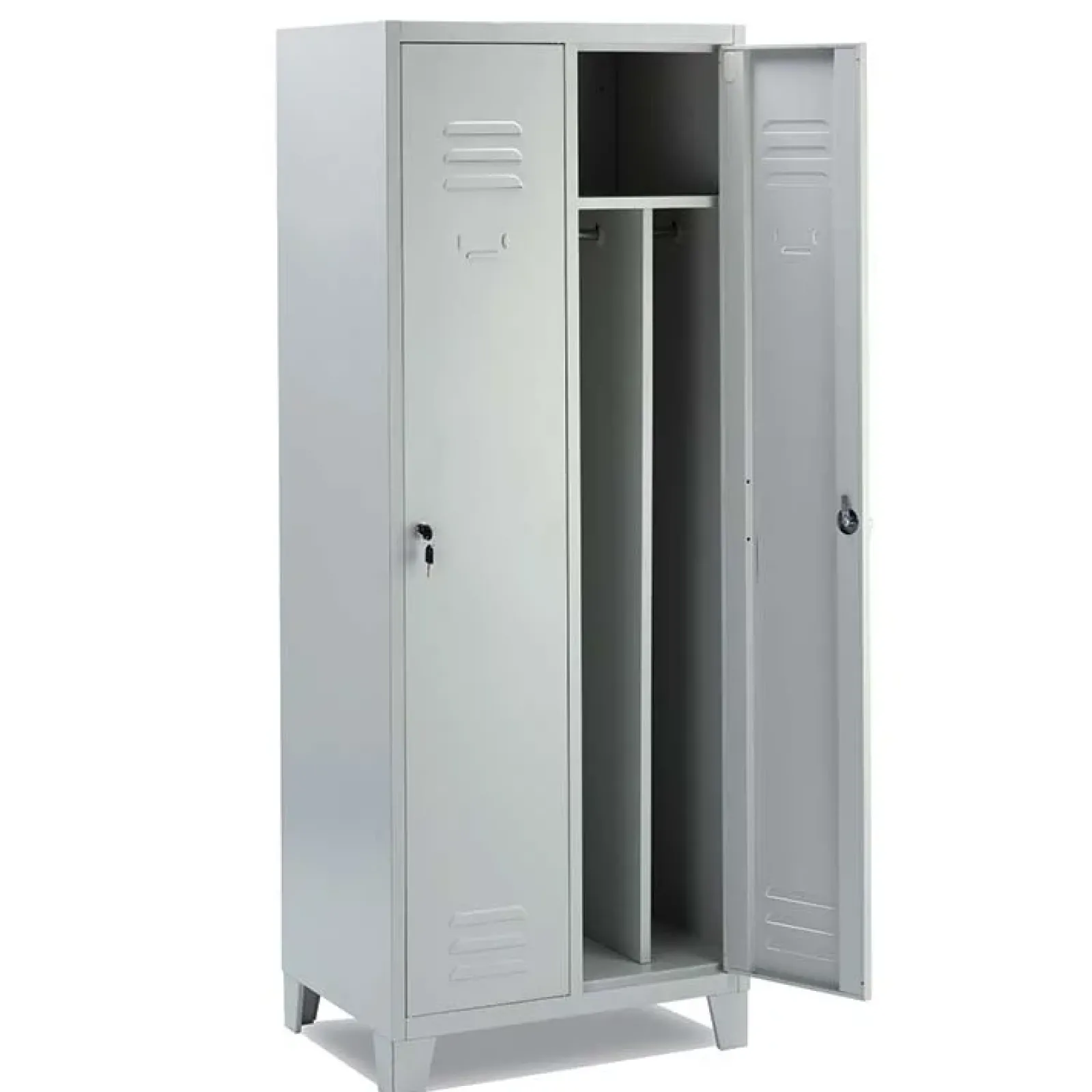 Si tratta di un armadietto a due posti, caratterizzato dal design semplice e minimale, ideale per arredare lo spogliatoio di qualsiasi attività.