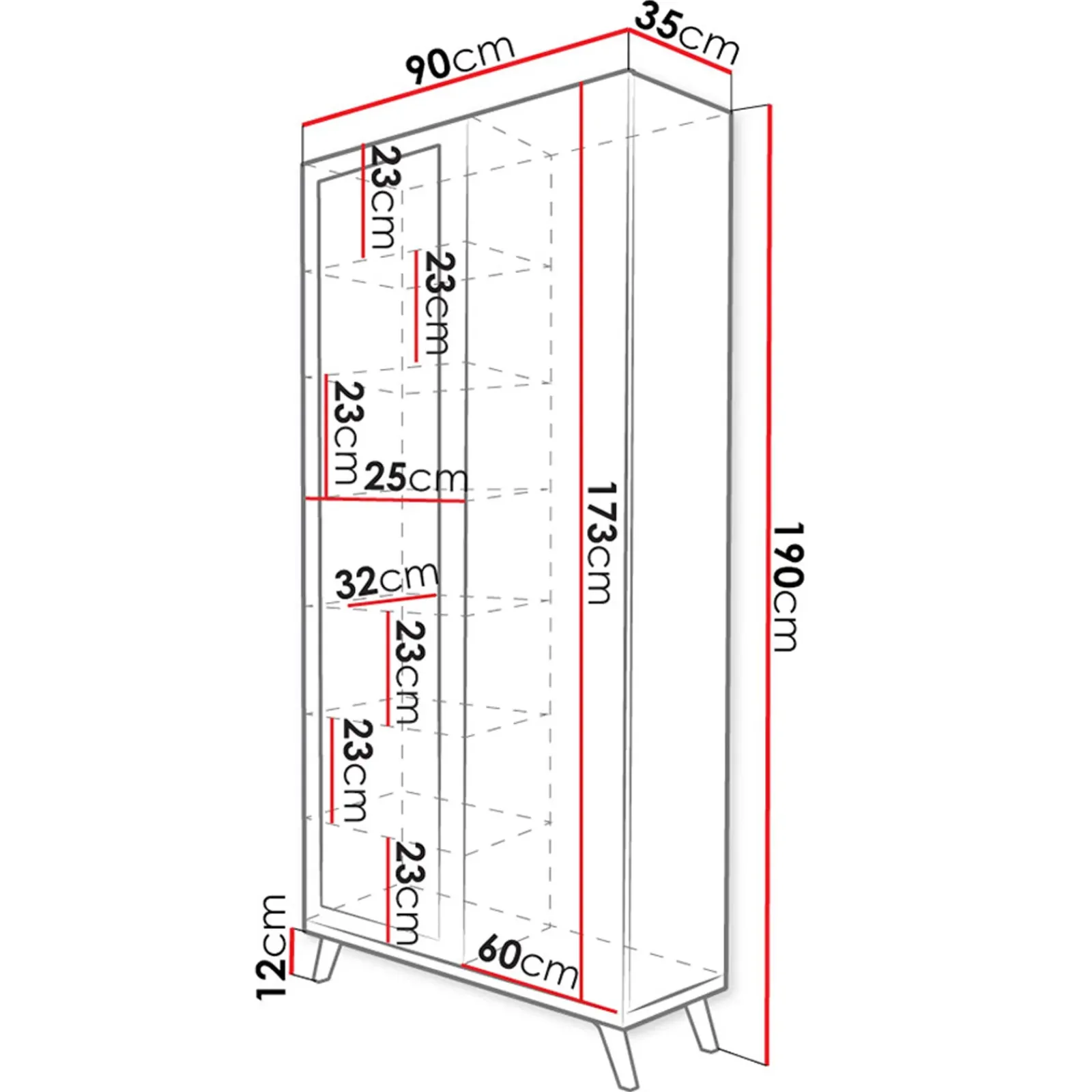 | Dimensioni | L.90 x H.190 x P.35 cm |