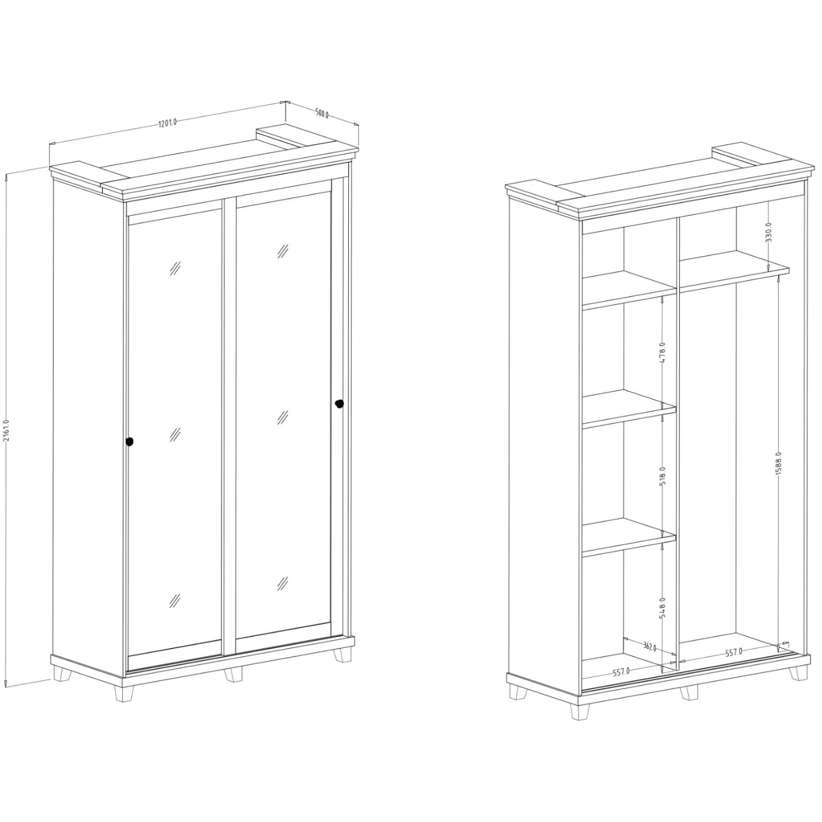 Armadio ingresso 120X216cm 2 ante specchio bianco rovere Texel