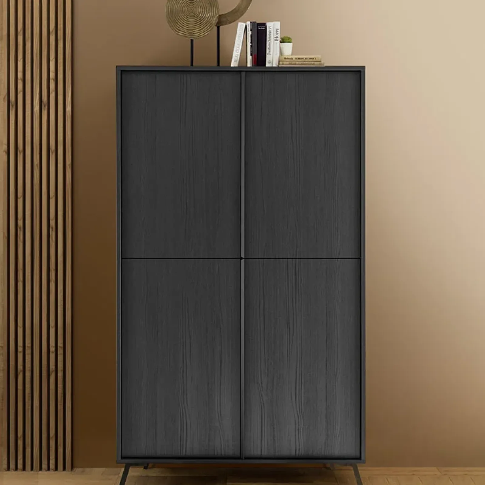 Madia alta moderna 4 ante 104x174cm nero frassinato Tosca