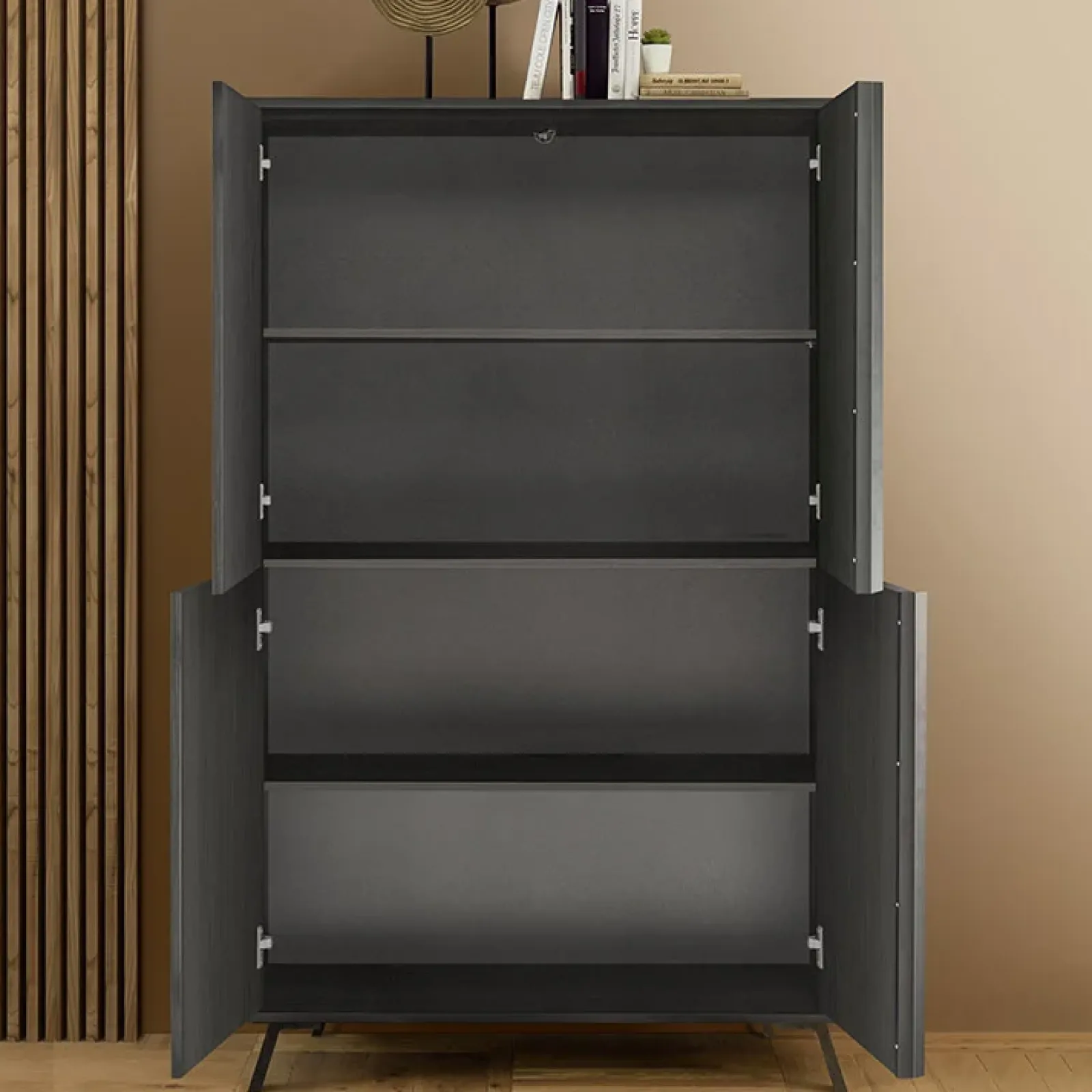 Garnero Arredamenti Armadi Soggiorno|Credenza Alta-Armadio soggiorno 104x174h cm 4 ante moderna Tosca Nero Frassinato