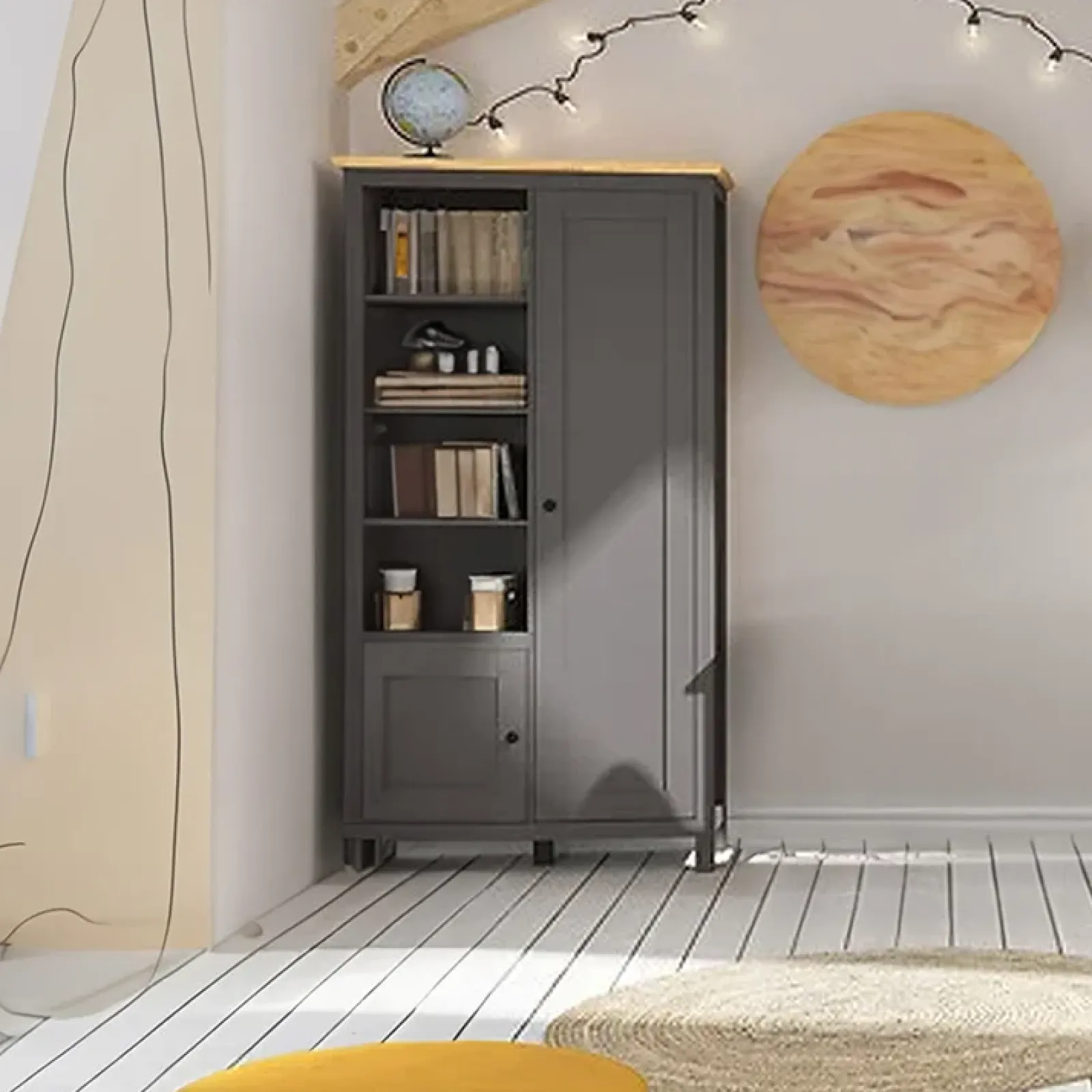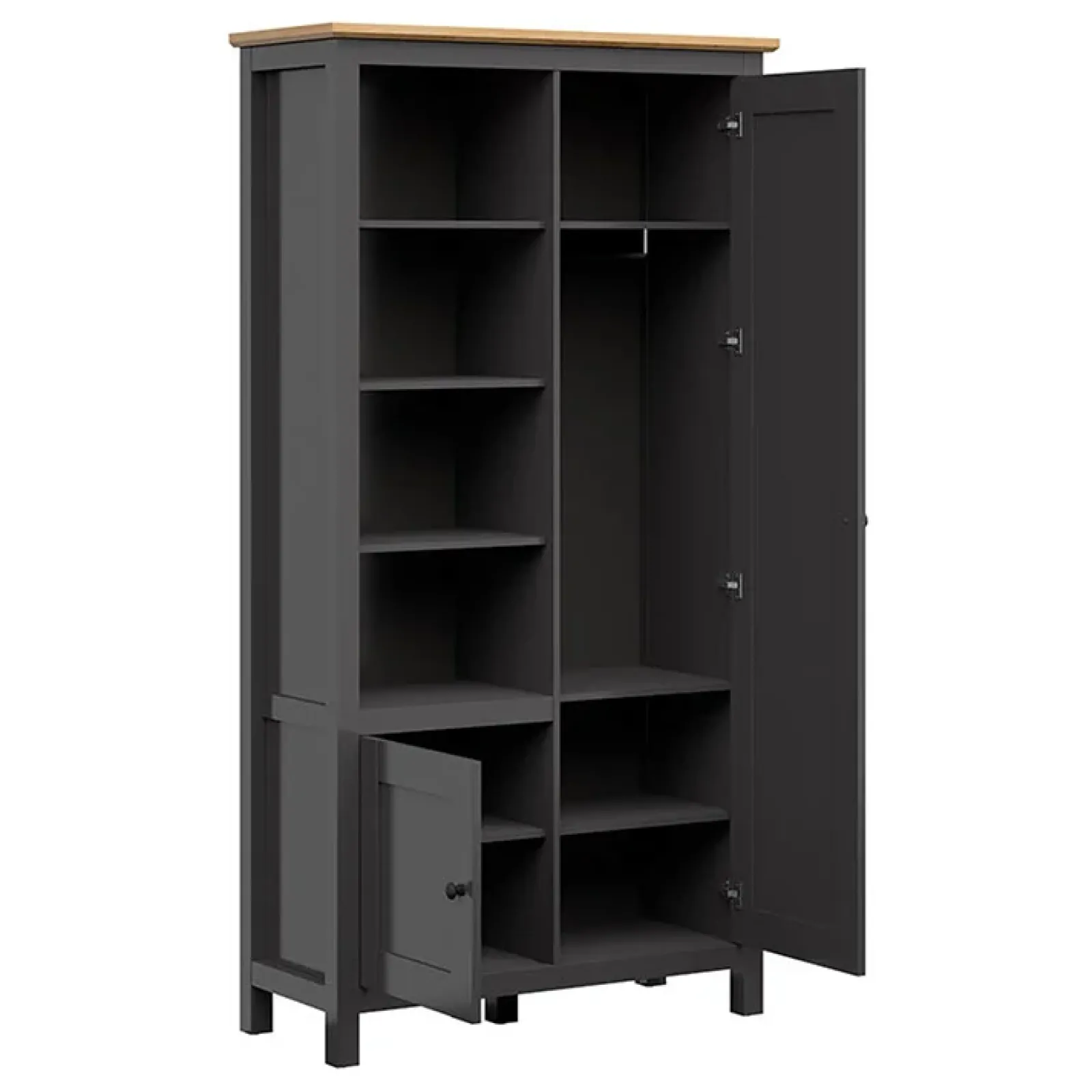 Garnero Arredamenti Armadi Soggiorno|Guardaroba-Armadio soggiorno 106x203h cm 4 vani giorno nero grafite rovere chiaro Holga
