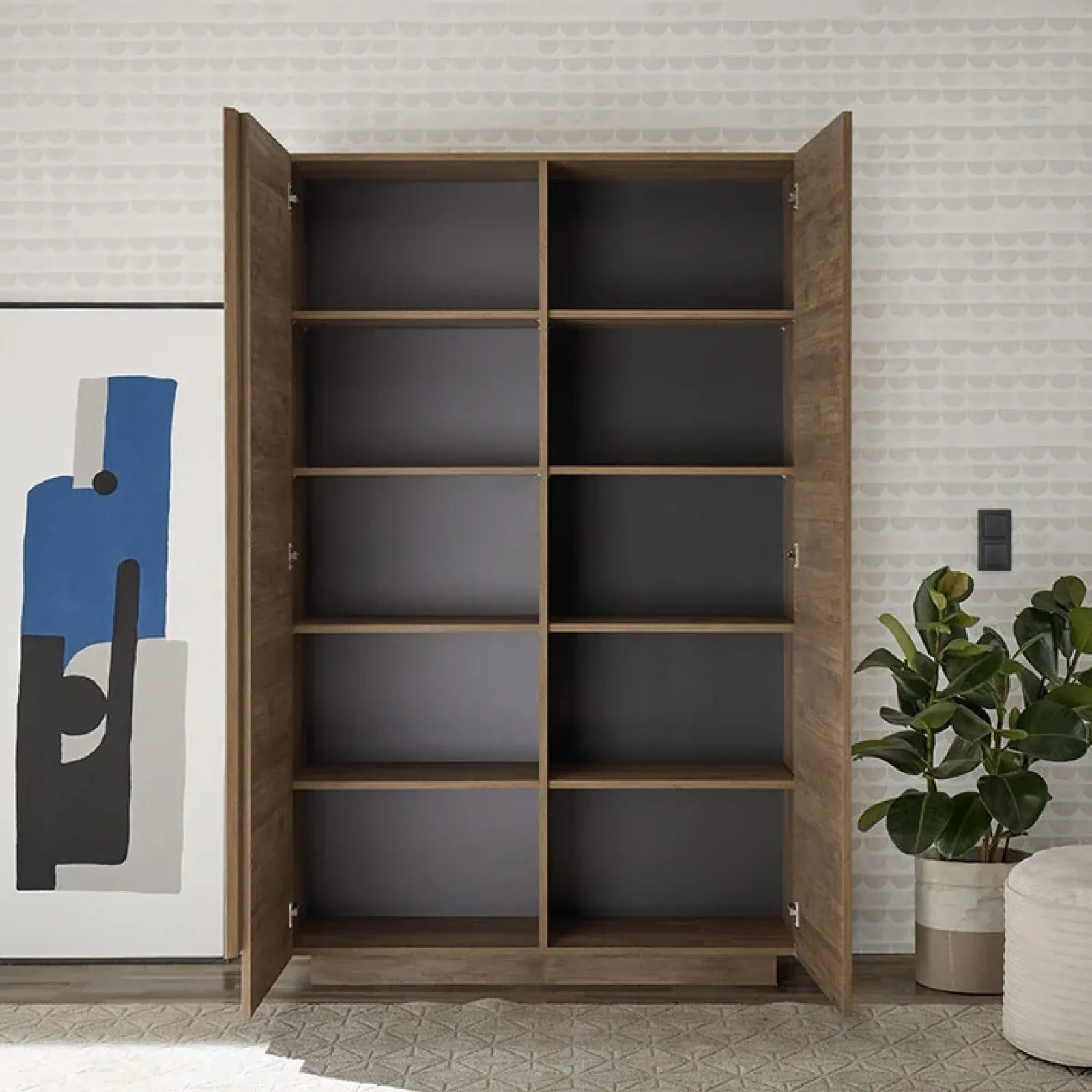 Pratica e capiente, la colonna moderna Alvarez è un composta da: due ante battenti con all’interno quattro ripiano; spazio ideale per riporre in modo ordinato tutti gli oggetti.