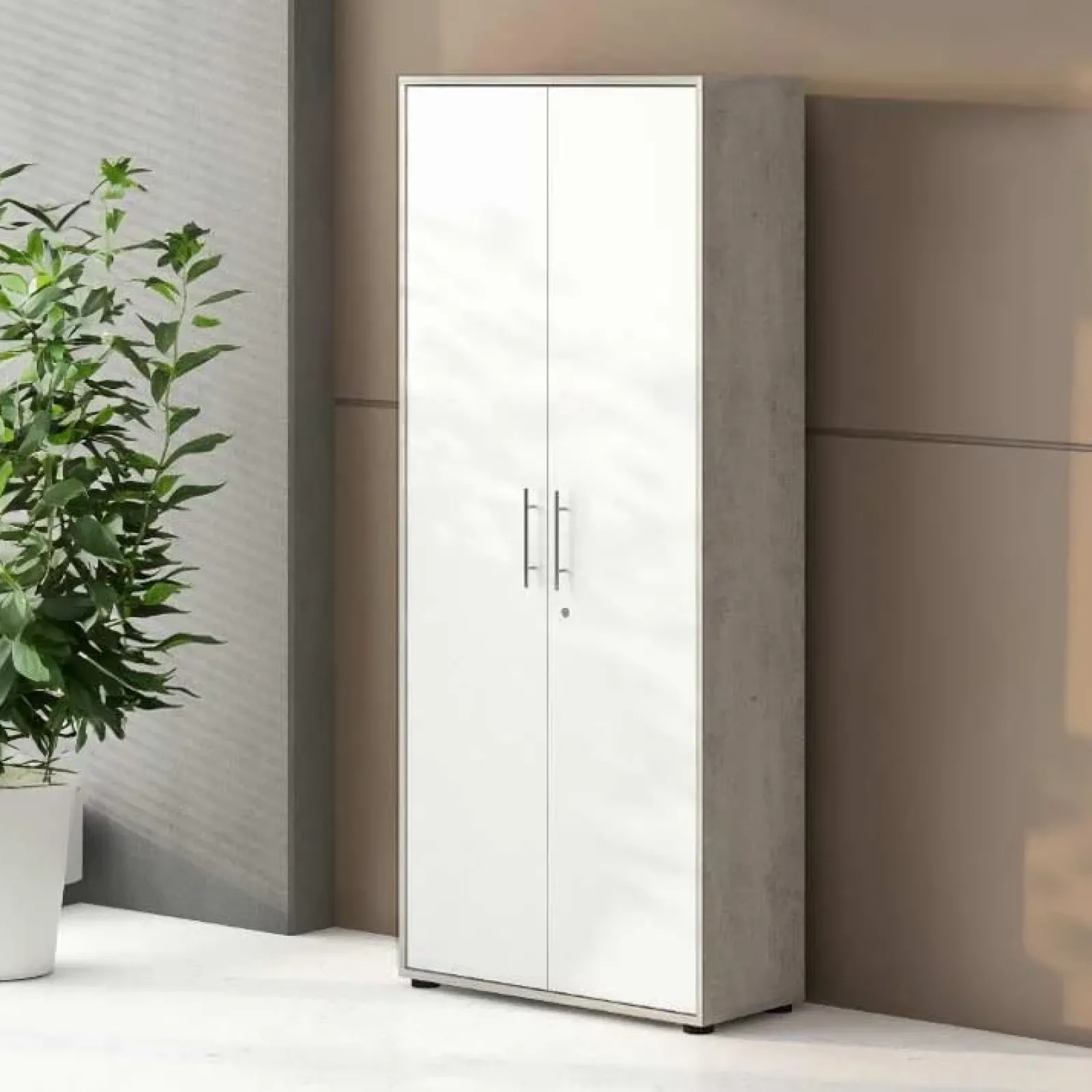 Armadio ufficio 2 ante 79x188cm bianco frassinato cemento Woody