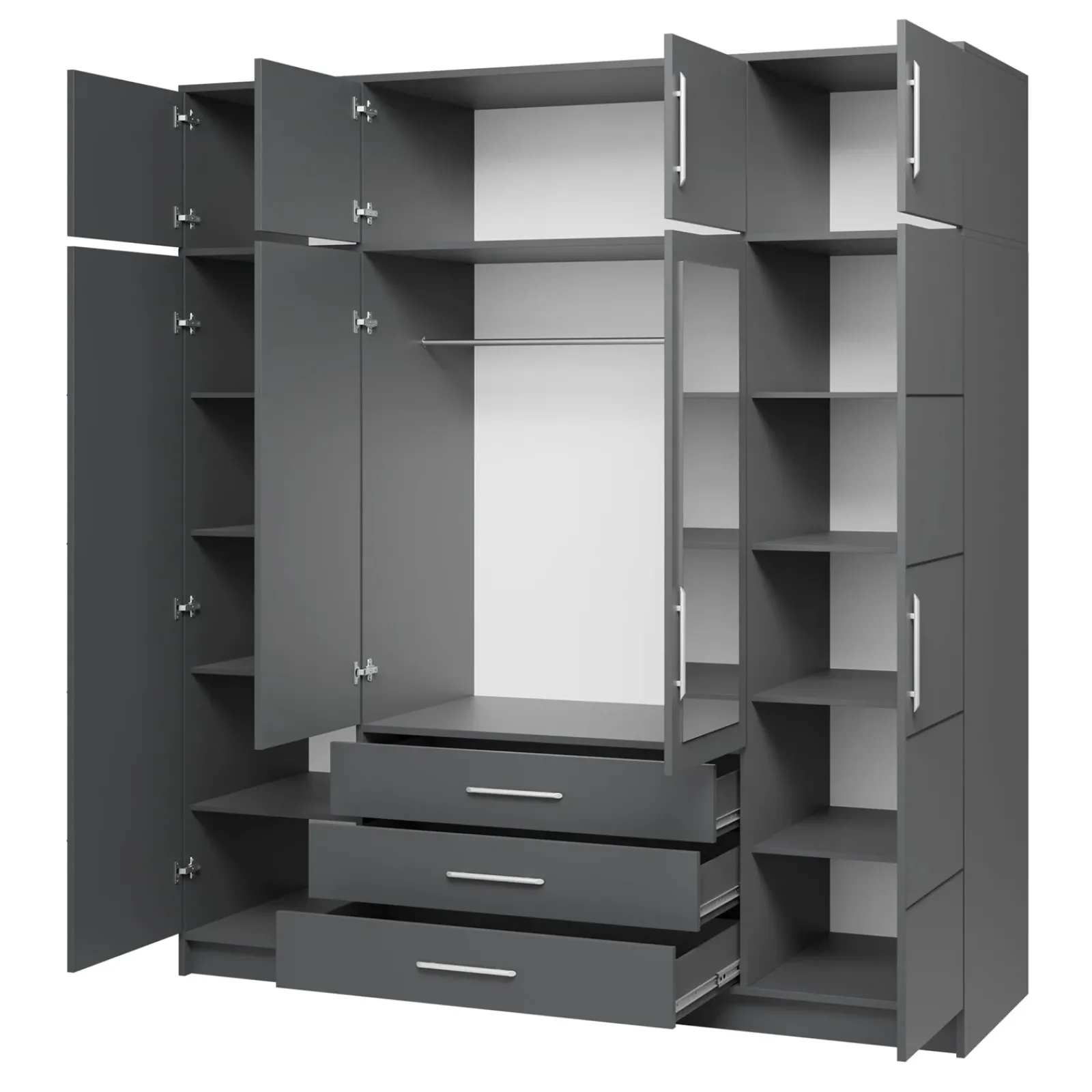 Armadio 196x200h cm 4 ante 3 cassetti con specchio antracite Sottosogno