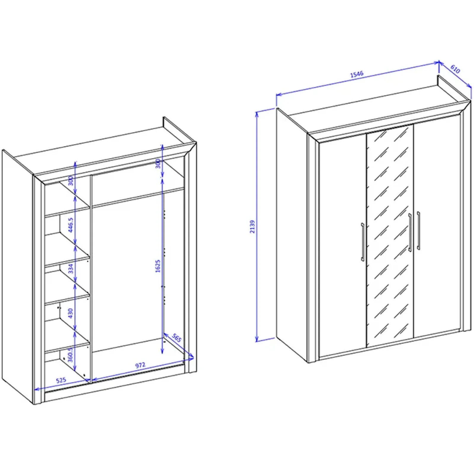 - dimensioni totali: L.155 x H.214 x P.61 cm