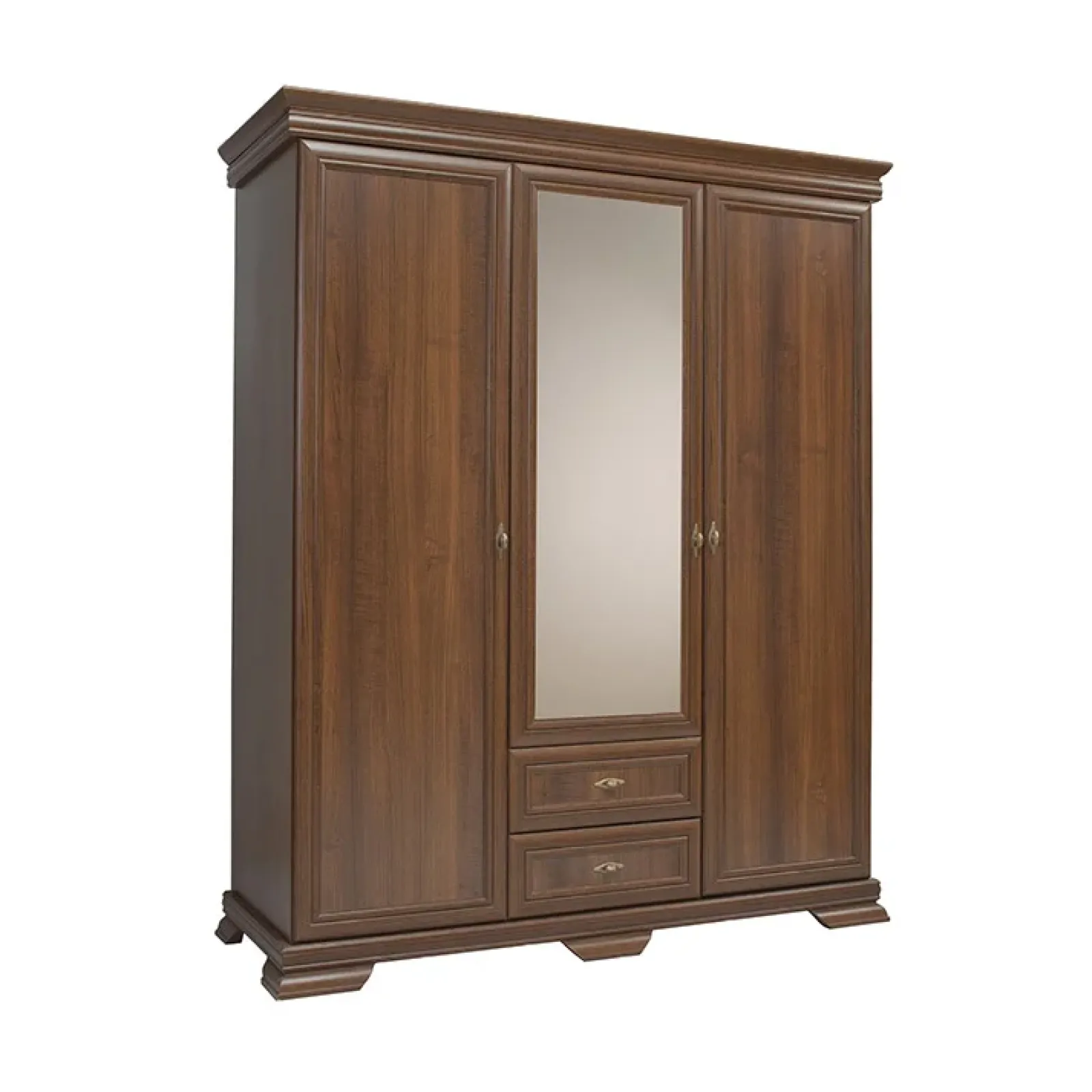 Garnero Arredamenti Armadio Ante A Specchio|Armadio Ante Battenti-Armadio 158x193h cm 3 ante con specchio 2 cassetti arte povera quercia Kelly Noce