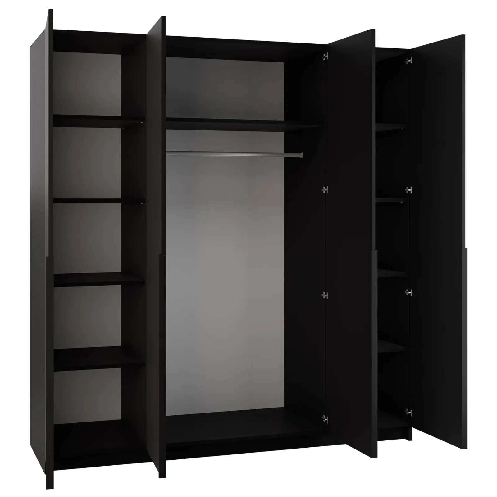 Armadio camera da letto 200x215cm 4 ante 2 specchi nero Glammy 4