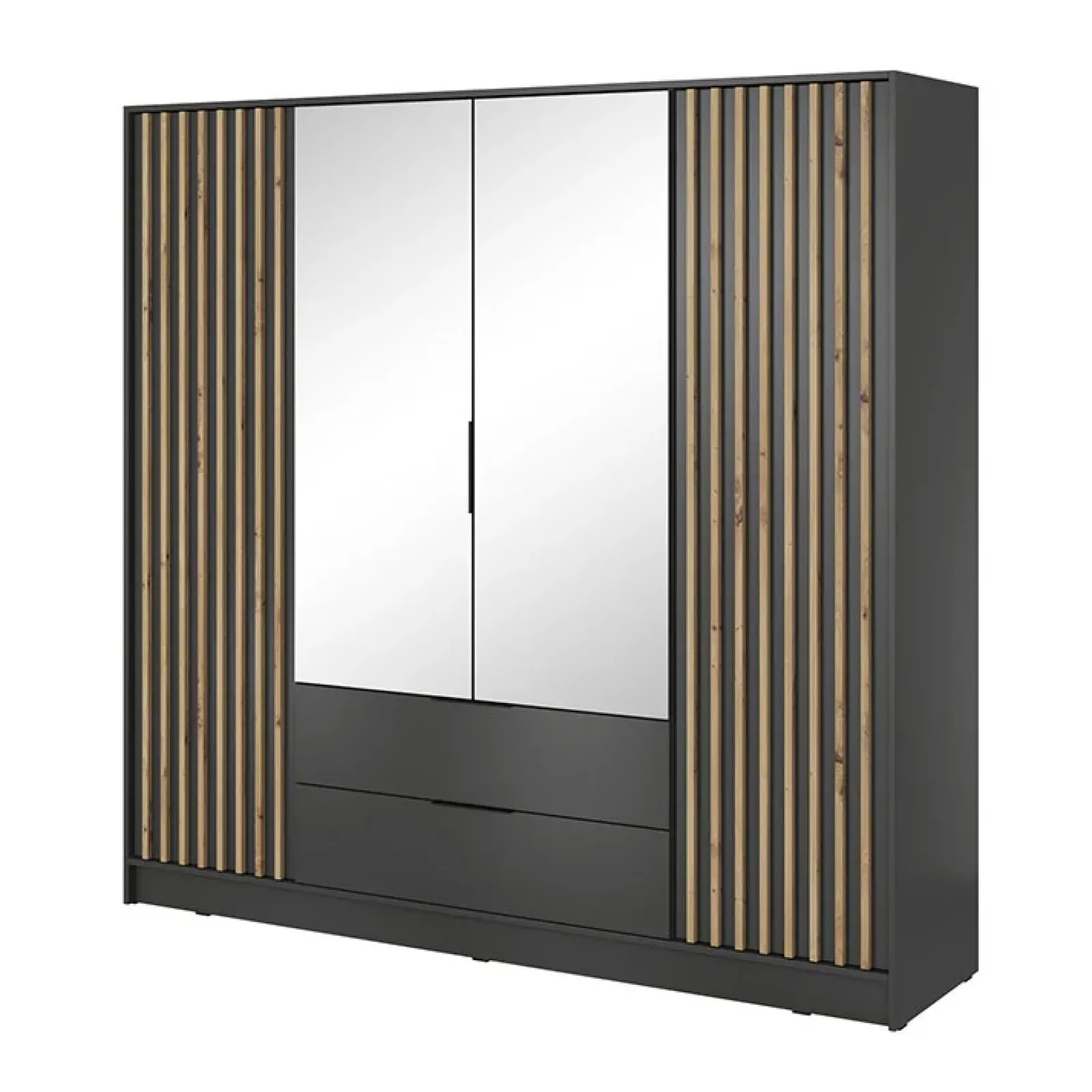 Armadio 4 ante con specchio 206x200cm antracite quercia Miller