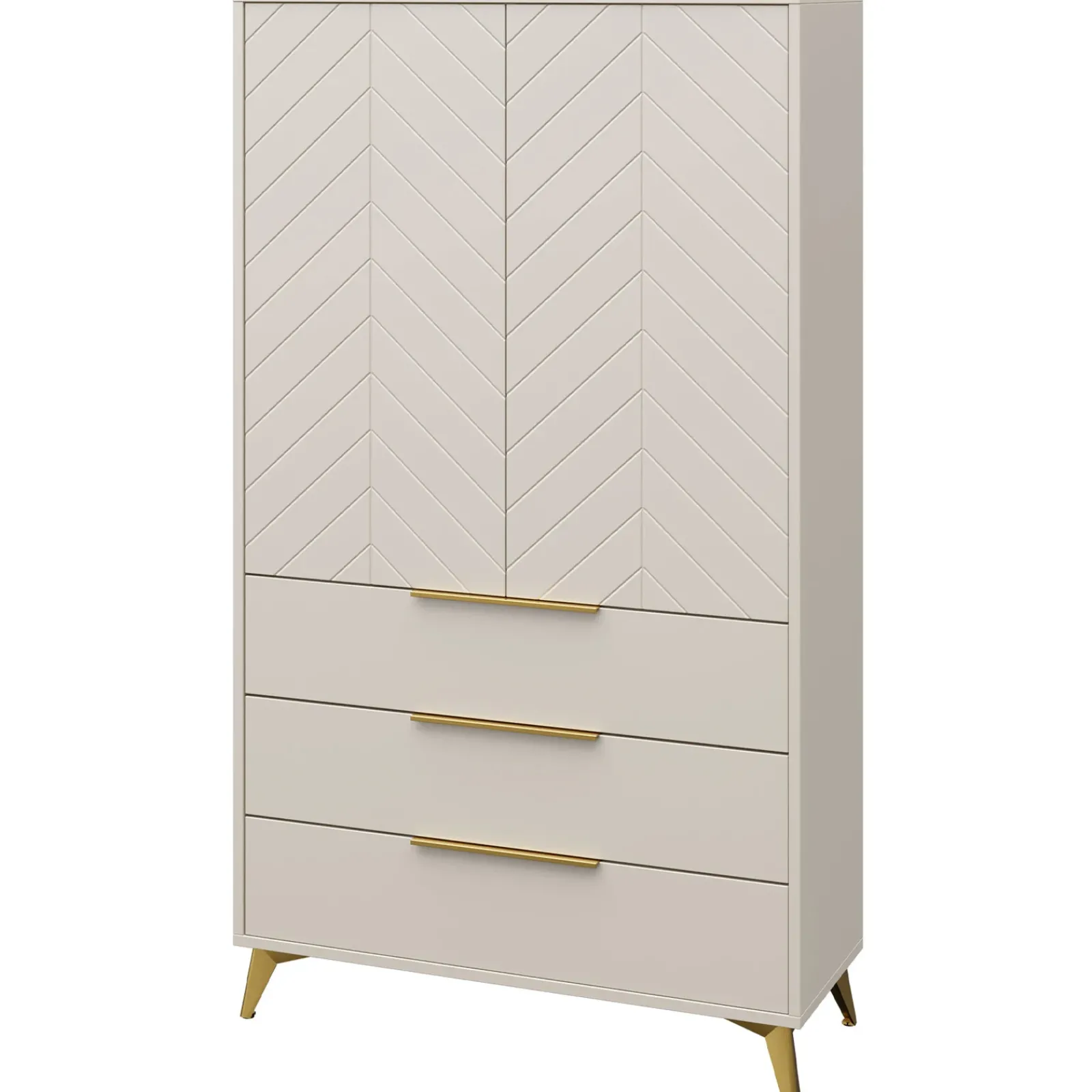 Garnero Arredamenti Armadio Ante Battenti|Armadi Soggiorno-Armadio soggiorno 104x180h cm 2 ante 6 cassetti beige con frontali serigrafati Miriam