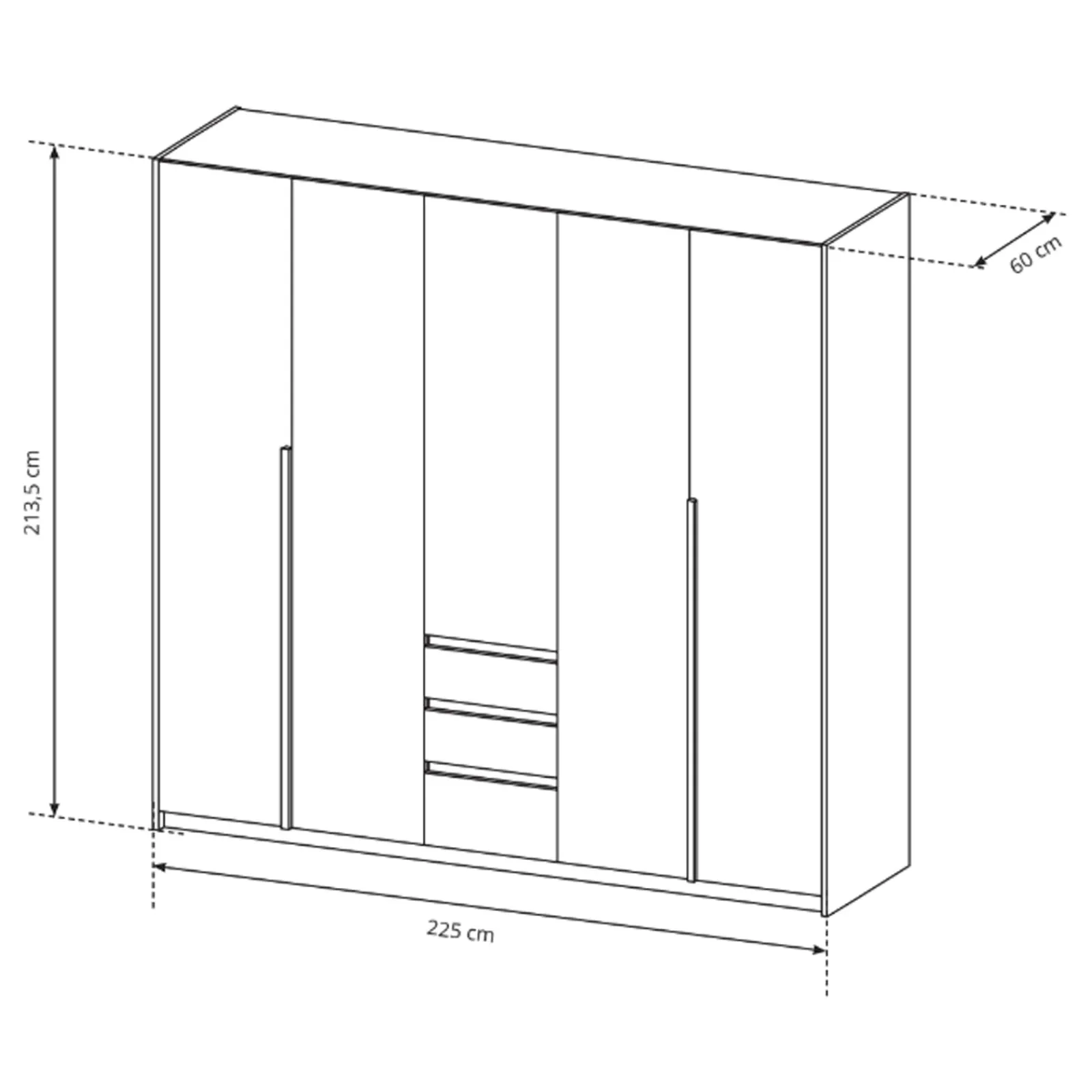 - dimensioni: L.225 x P.65 x H.213.5 cm