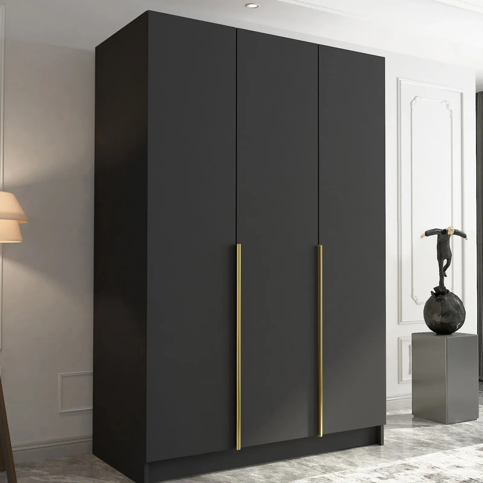 Armadio camera da letto 150x215cm 3 ante nero oro Glammy 3