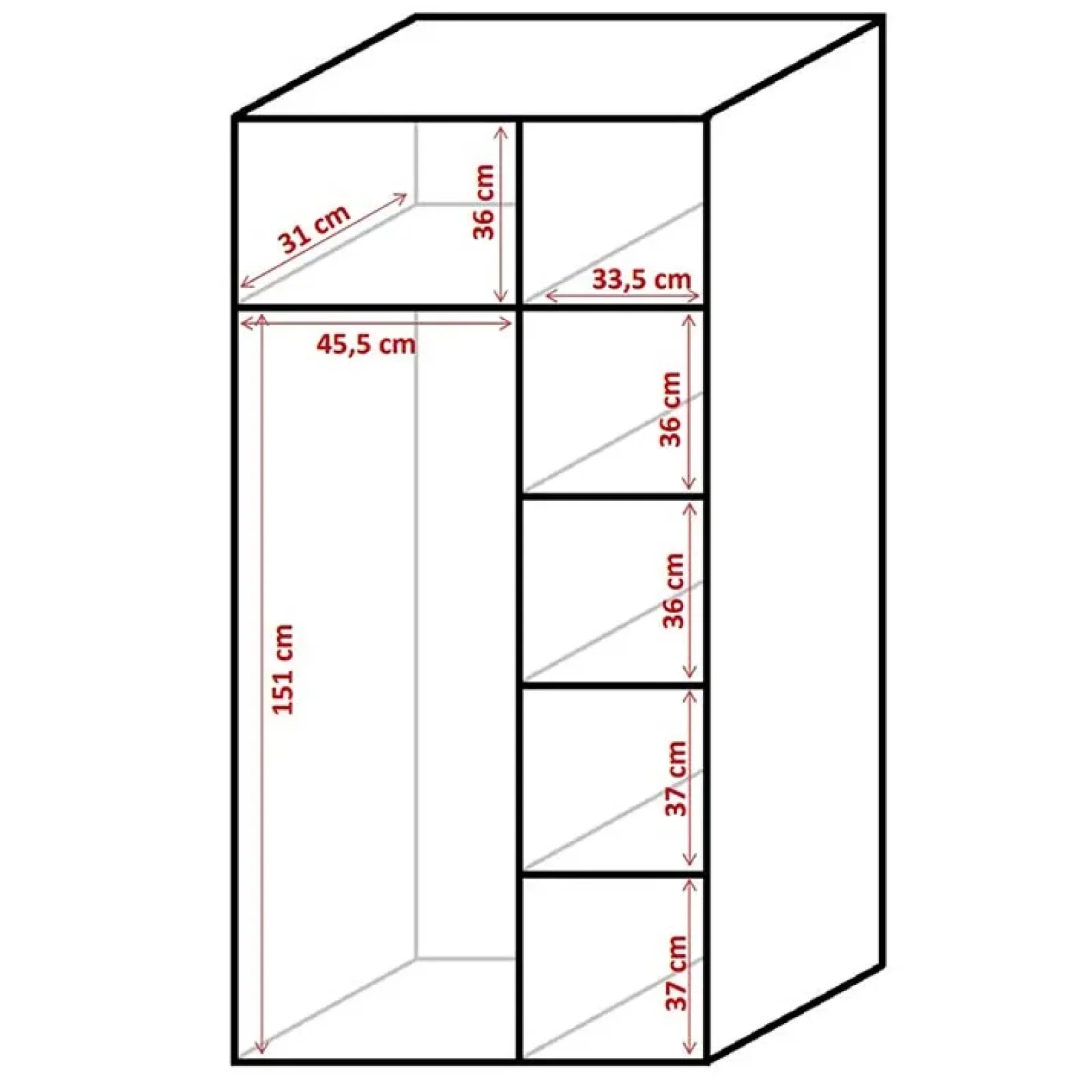- dimensioni: L.85 x H.195 x P.34 cm