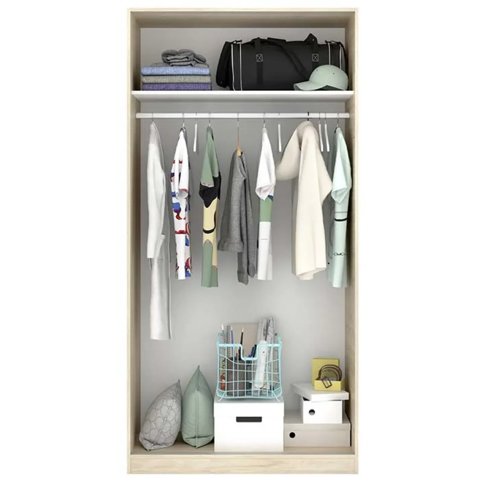 Ampio e capiente, è dotato di: un tubo appendiabiti ed un ripiano, spazio ideale per riporre tutti i vestiti.