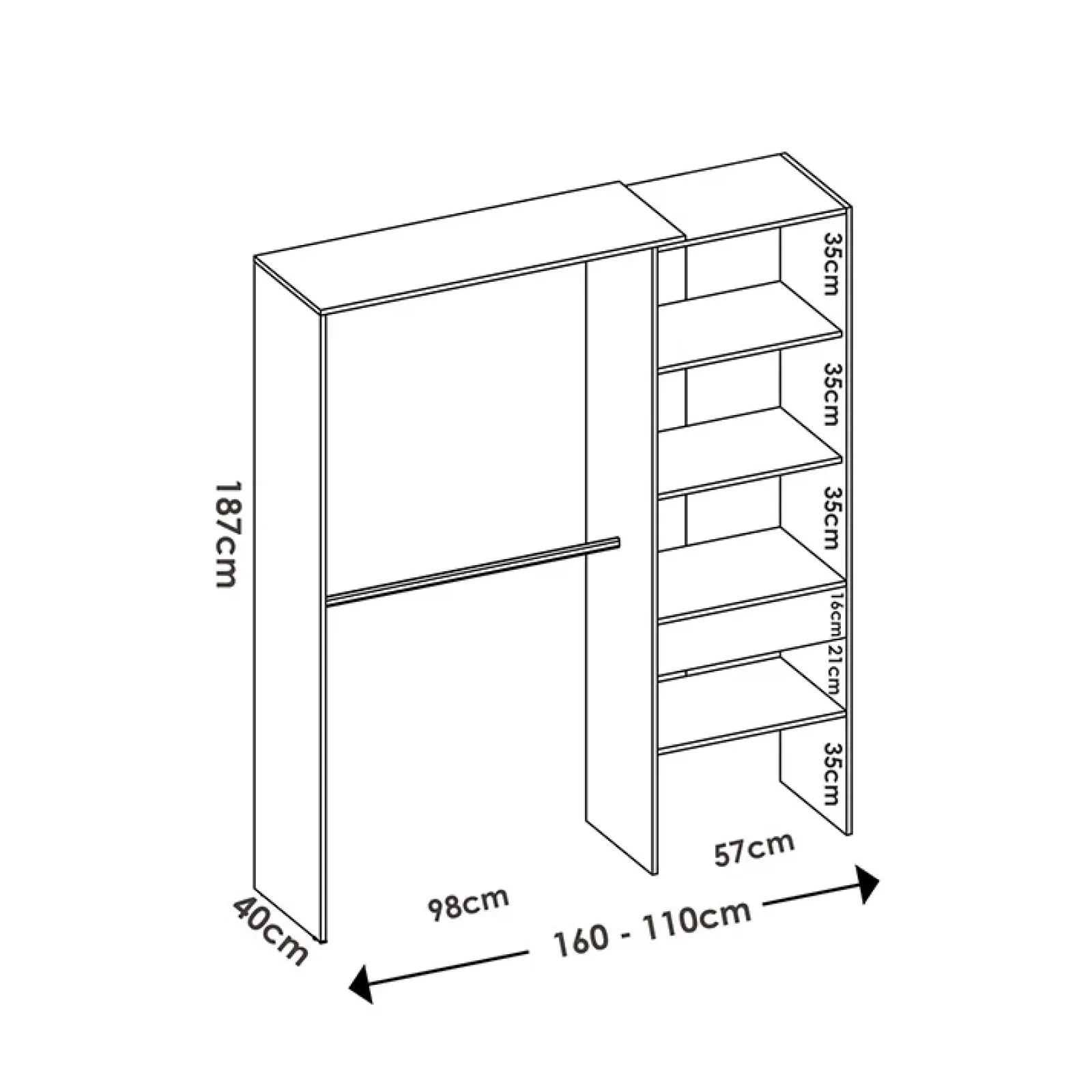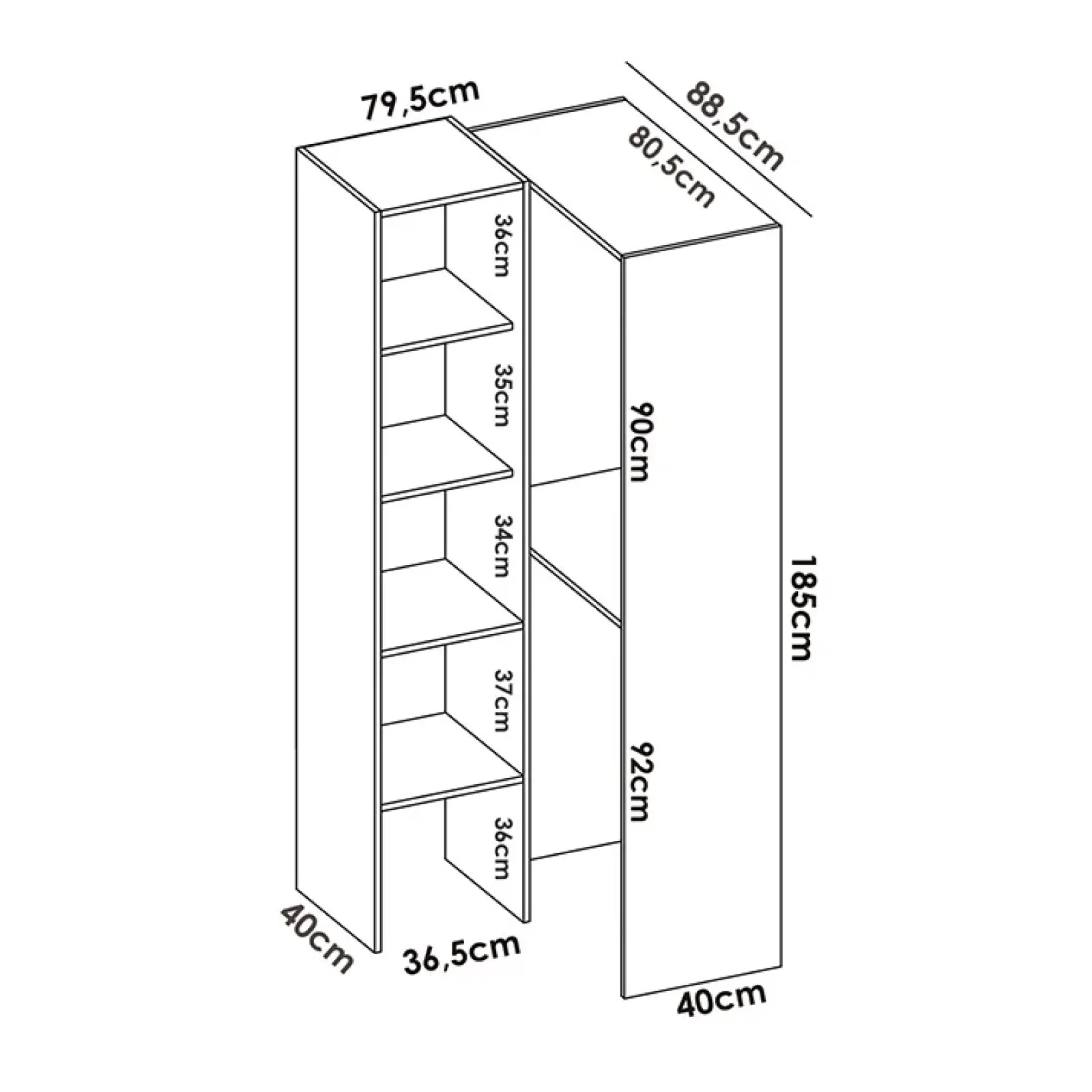 Cabina armadio angolare 187x248cm 4 scomparti rovere noce Rincon, originale composizione per la tua camera da letto, sarà capace di contenere abbigliamento e accessori personali grazie ai suoi spazi!