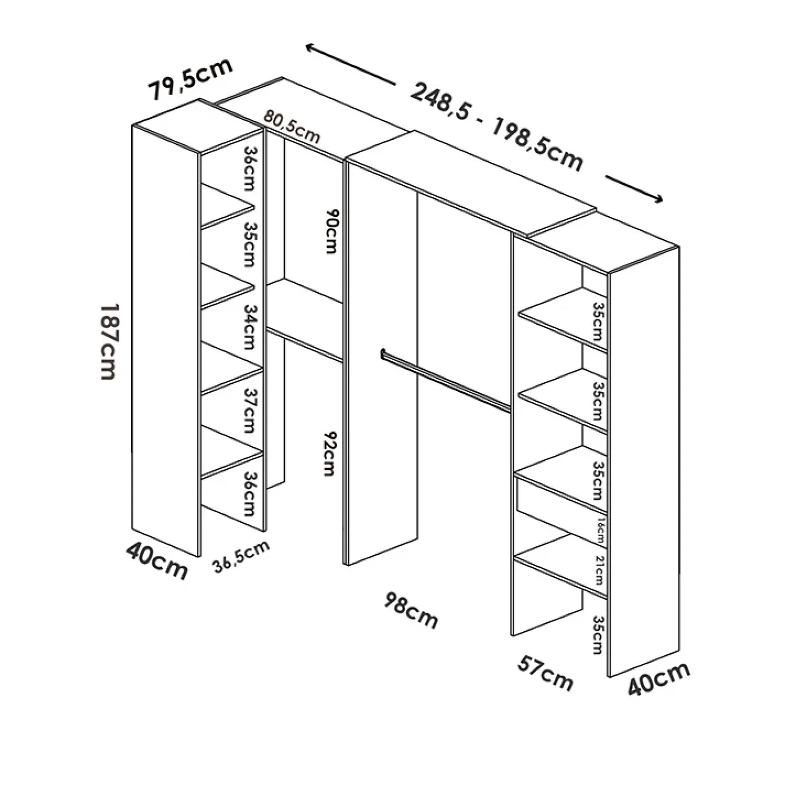 Cabina armadio angolare 187x248cm 4 scomparti rovere noce Rincon