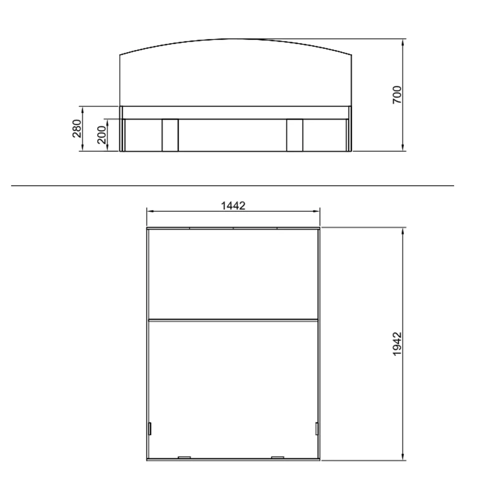 - Dimensioni letto contenitore: L.144 x P.195 x H.70 cm
