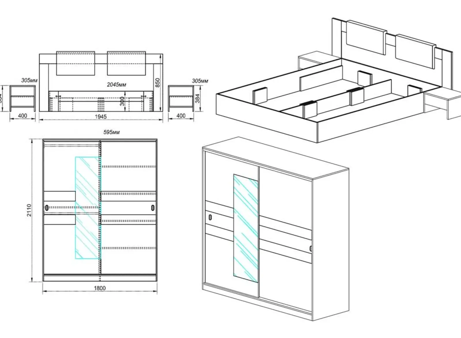 L’abbinamento di colori come il rovere ed il grigio, rendono questa camera adatta per essere collocata in diverse tipologie d’arredamento. La composizione è composta da: un ampio armadio, un letto contenitore matrimoniale, due comodini ed un comò.
