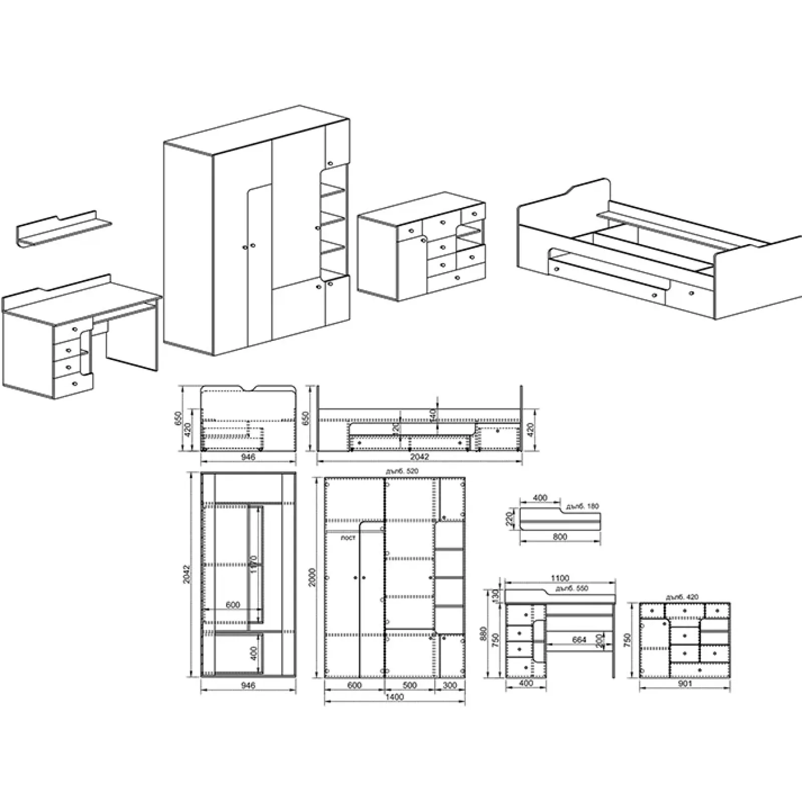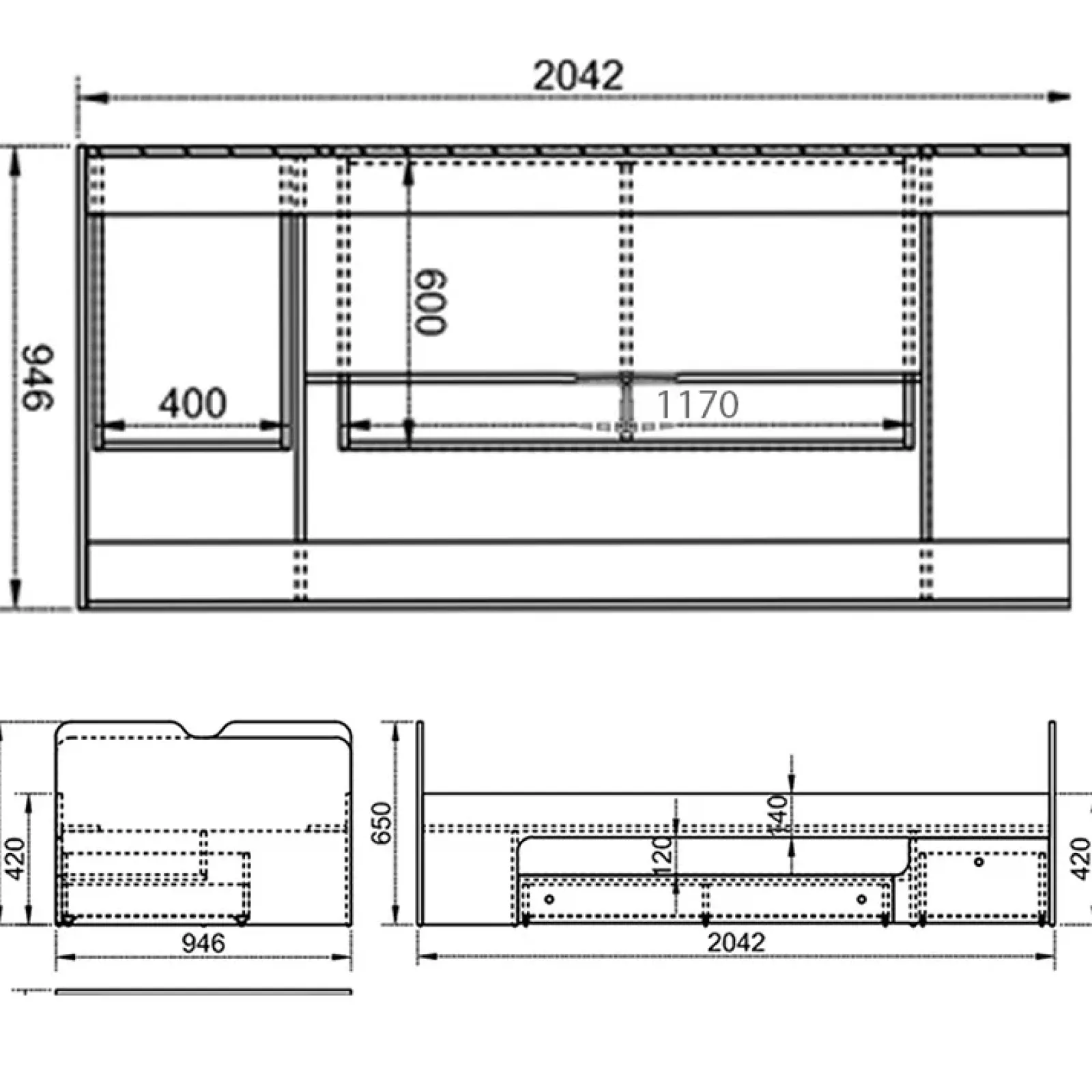 - Dimensioni letto: L.94,6 x H.65 x P.204.2 cm