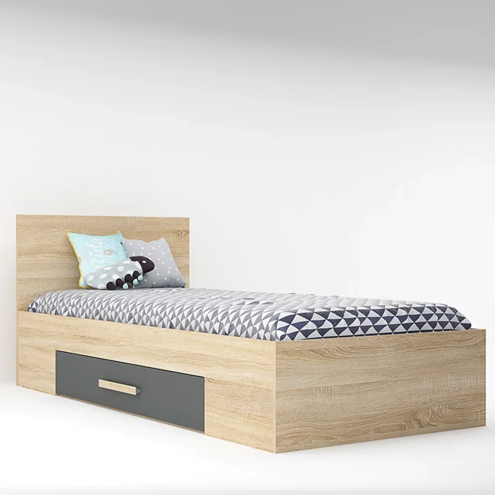 Il letto singolo moderno 90x200cm Chiaretto è nella finitura rovere e antracite.