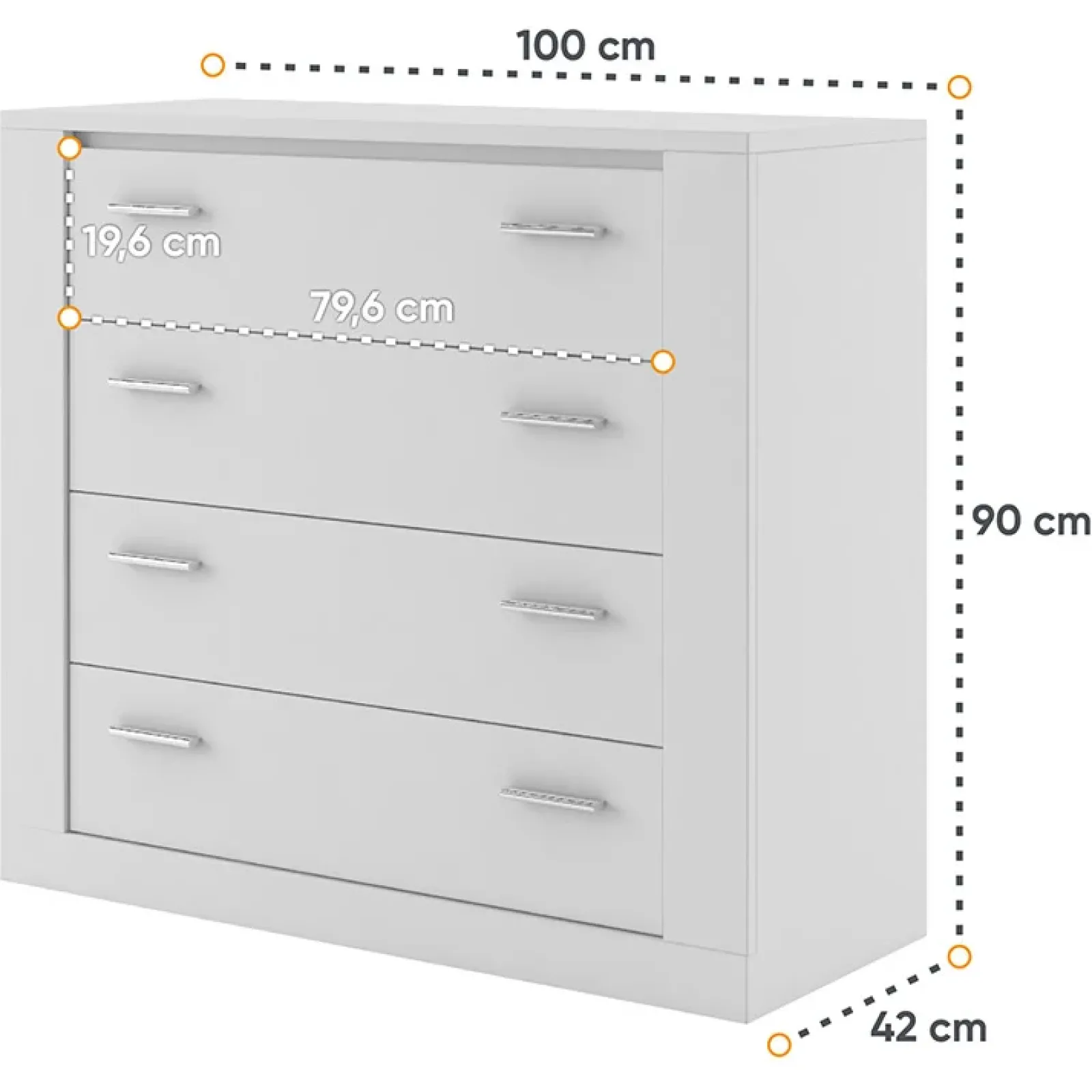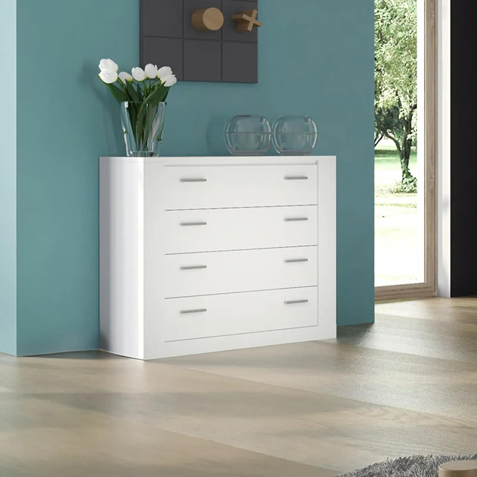 Cassettiera 4 cassetti 100x90cm bianco opaco Ombra