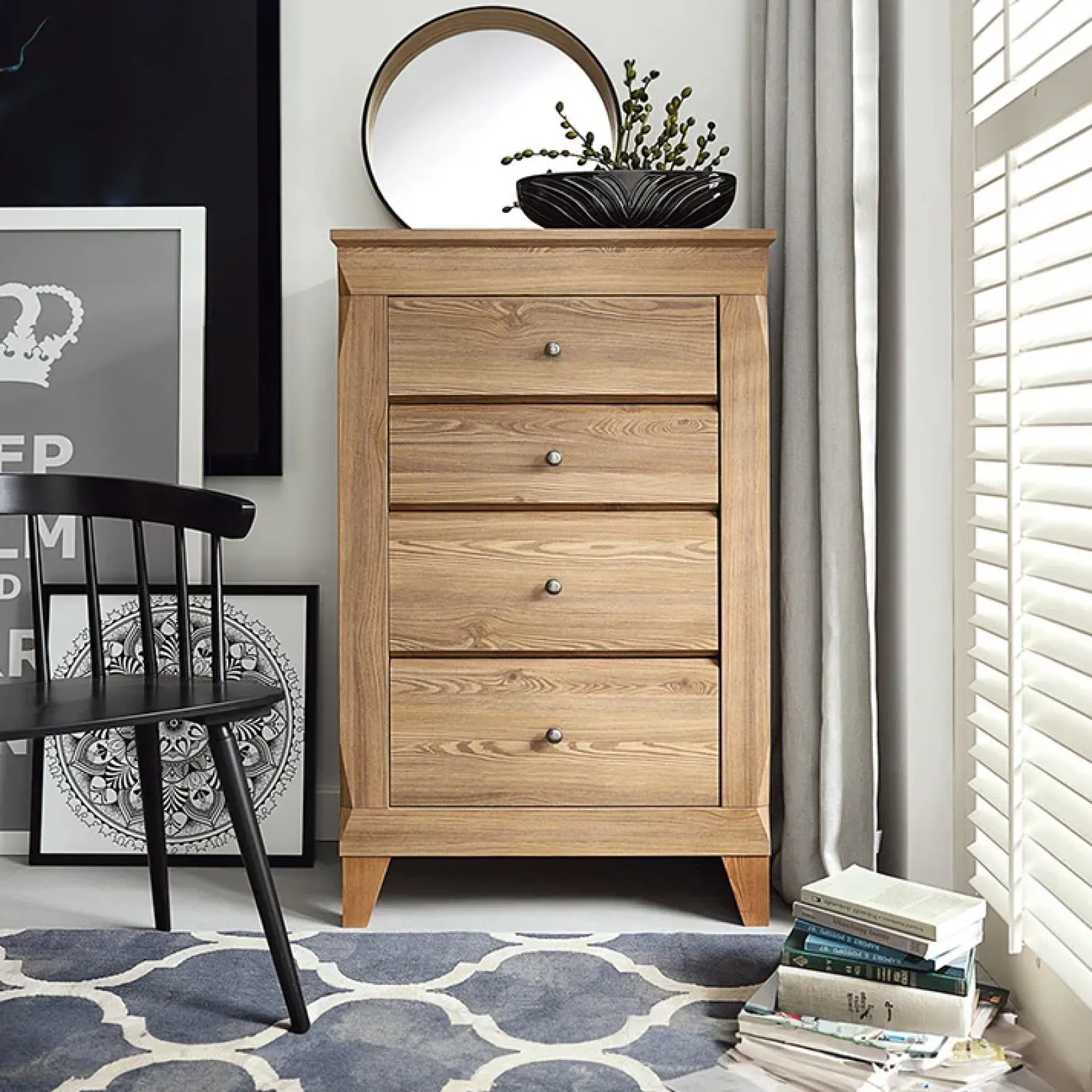 Cassettiera 72x116cm 4 cassetti rovere scuro Lucca: lo spazio non sarà più un tuo problema!