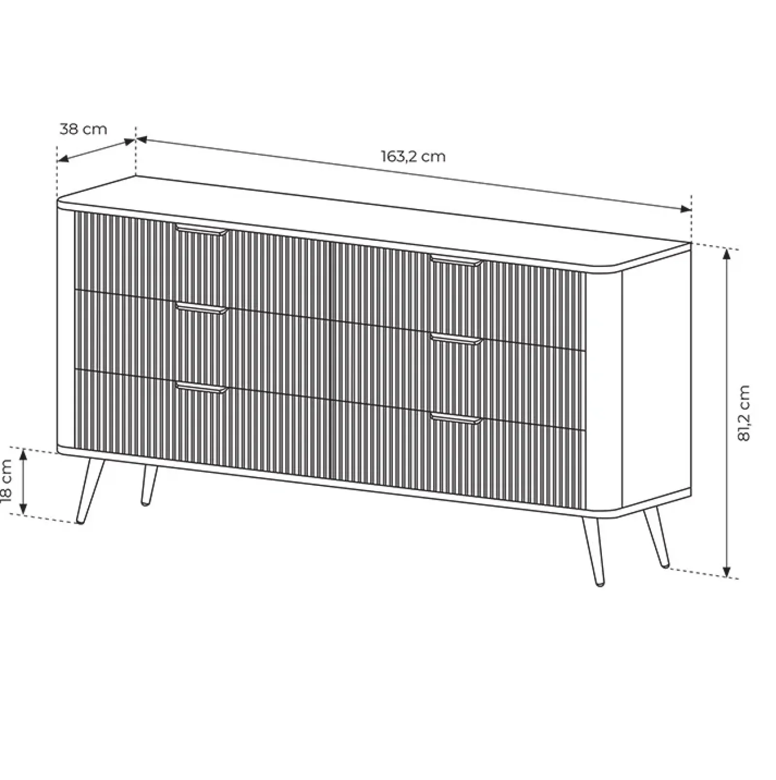 Stai cercando un mobile capiente e di carattere che aggiunga valore estettico e funzionale al tuo soggiorno? Quello che stai cercando è la Madia 6 cassetti Ramis! La sua finitura nero opaco dona un tocco di versatilità al mobile, che si abbina così a una vasta gamma di stili e palette cromatiche! I frontali cannettati donano alla madia un look moderno e sofisticato, che aggiunge carattere e stile a qualsiasi stanza. È dotata di 6 cassetti, apribili comodamente grazie alle maniglie in metallo nero, che offrono una soluzione se sei in cerca di un’oganizzazione ottimale. Infatti sono ottimi per riporre una vasta gamma di oggetti, come stoviglie, biancheria, documenti e accessori mantendo lo spazio ordinato e pulito. Il piano superiore della madia è ottimale per sistemare libri o riviste in modo ordinato per una lettura più accessibile o per appoggiare vasi e oggetti decorativi. La struttura poggia su piedini in metallo nero di 18 cm che donano un aspetto più elegante e curato al mobile. La forma lineare e il design pulito la rendono adatta ai vari ambienti della casa! Il prodotto è disponibile anche in altre finiture!