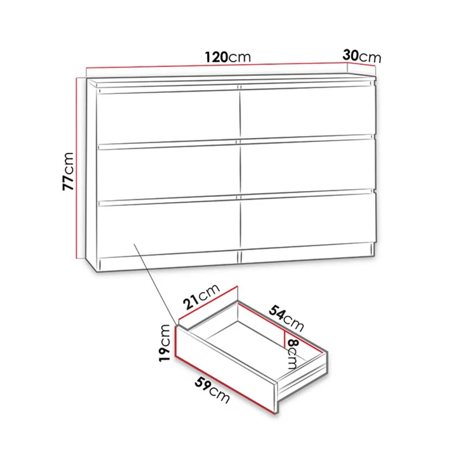 Cassettiera moderna 120x77cm 6 cassetti nero Rotterdam