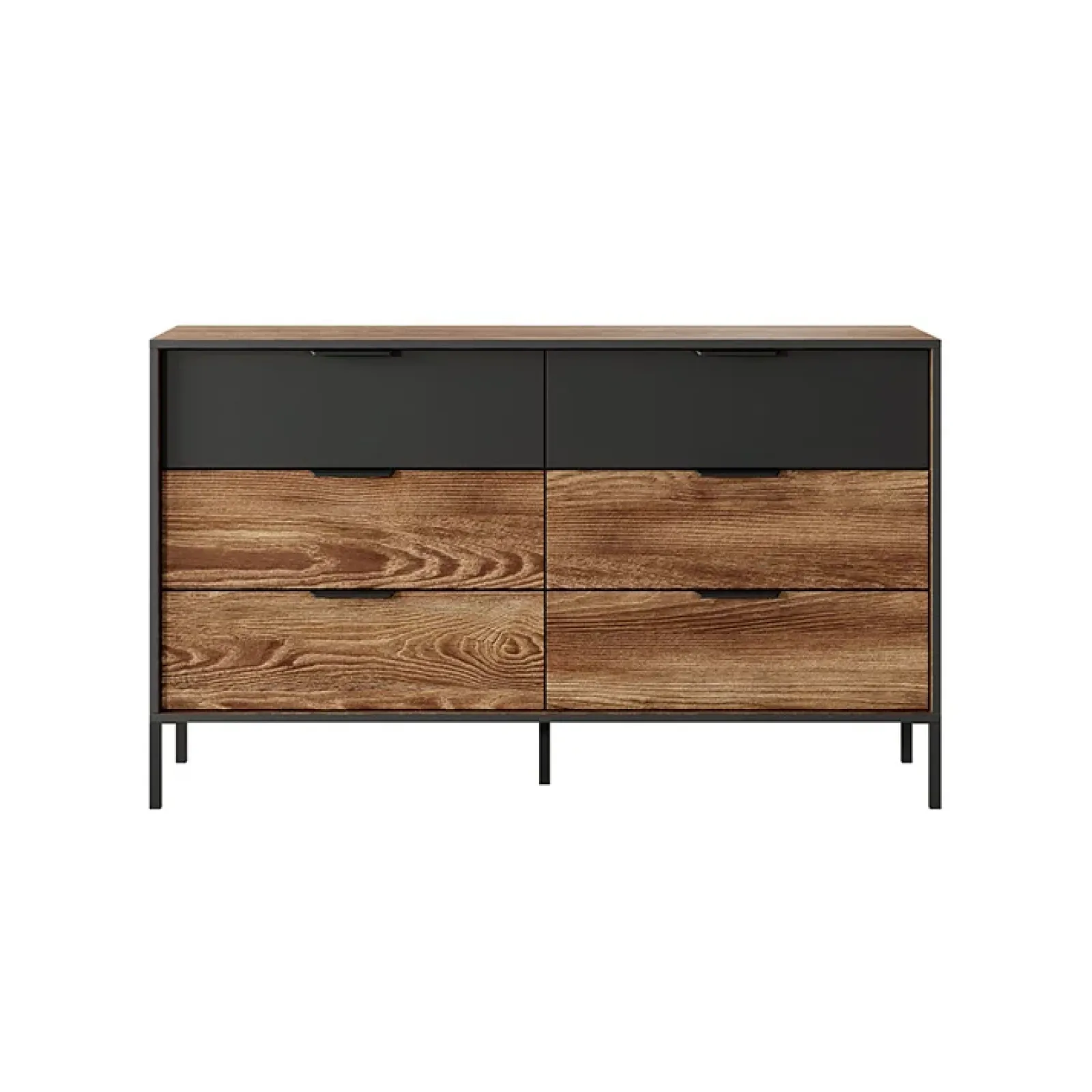 Cassettiera 137x81cm 6 cassetti quercia nero Smooty