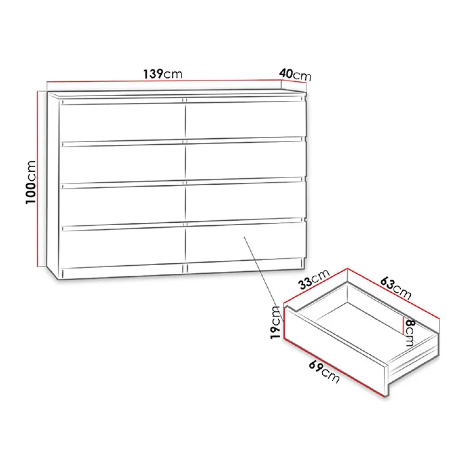 Cassettiera moderna 139x100cm 8 cassetti nero Rotterdam, ideale per riporre i tuoi indumenti regalerà alla tua stanza un’aria contemporanea.