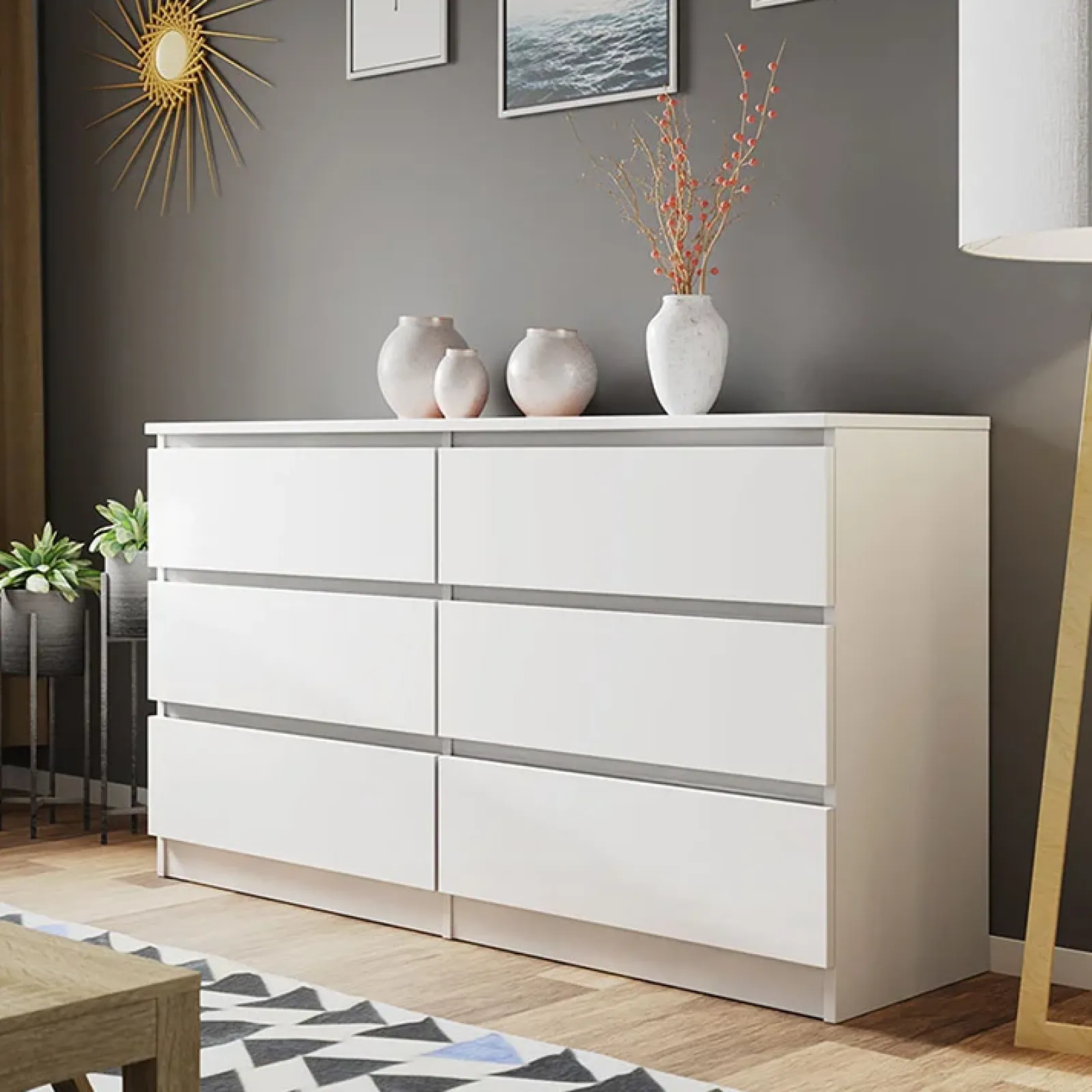 Cassettiera moderna 139x77cm 6 cassetti bianco Rotterdam, la sua grande capienza ti permetterà di ordinare tutta la tua biancheria .