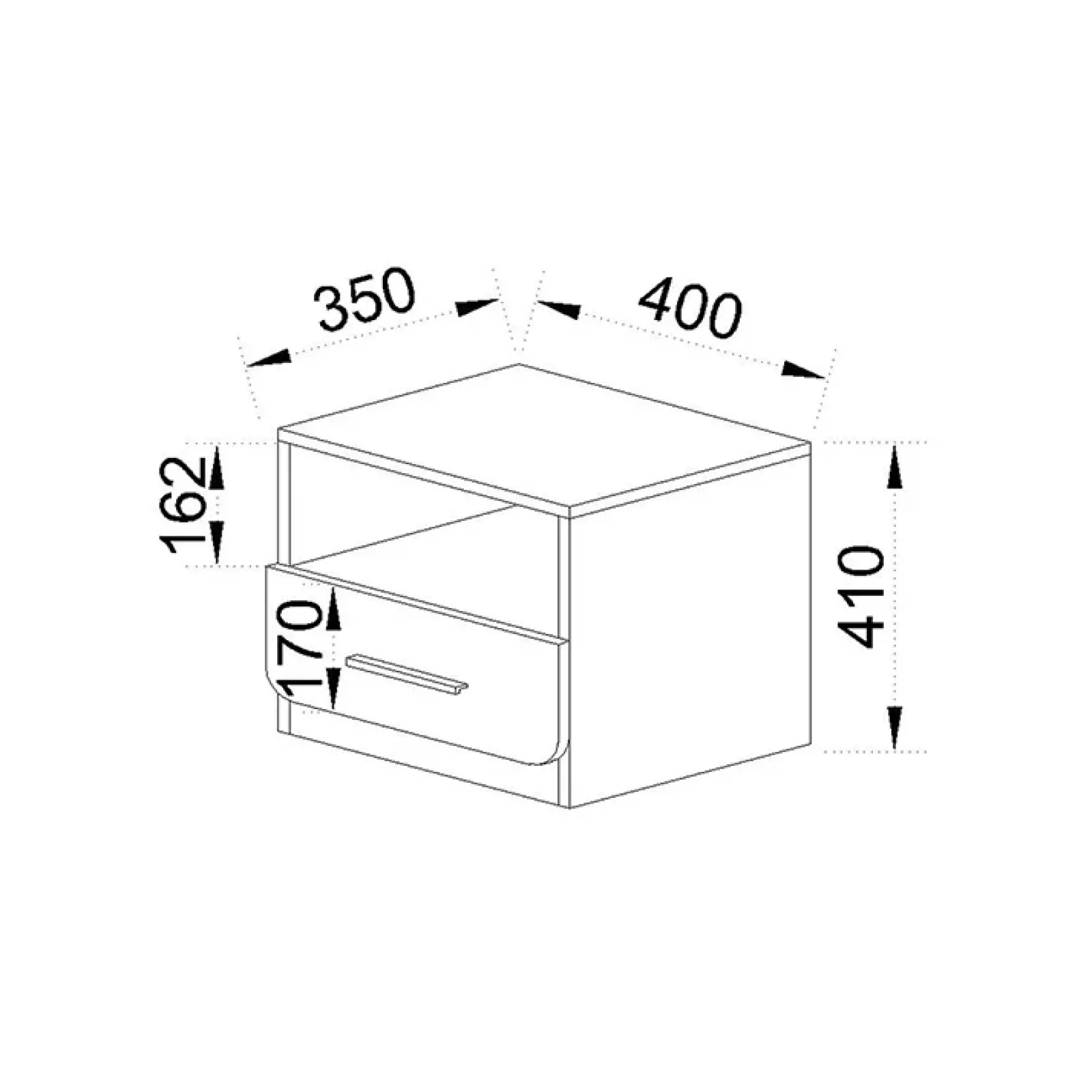 Il comodino Zadar comprende un cassetto per il contenimento di biancheria e un vano a giorno per avere a portata di mano piccoli oggetti.
