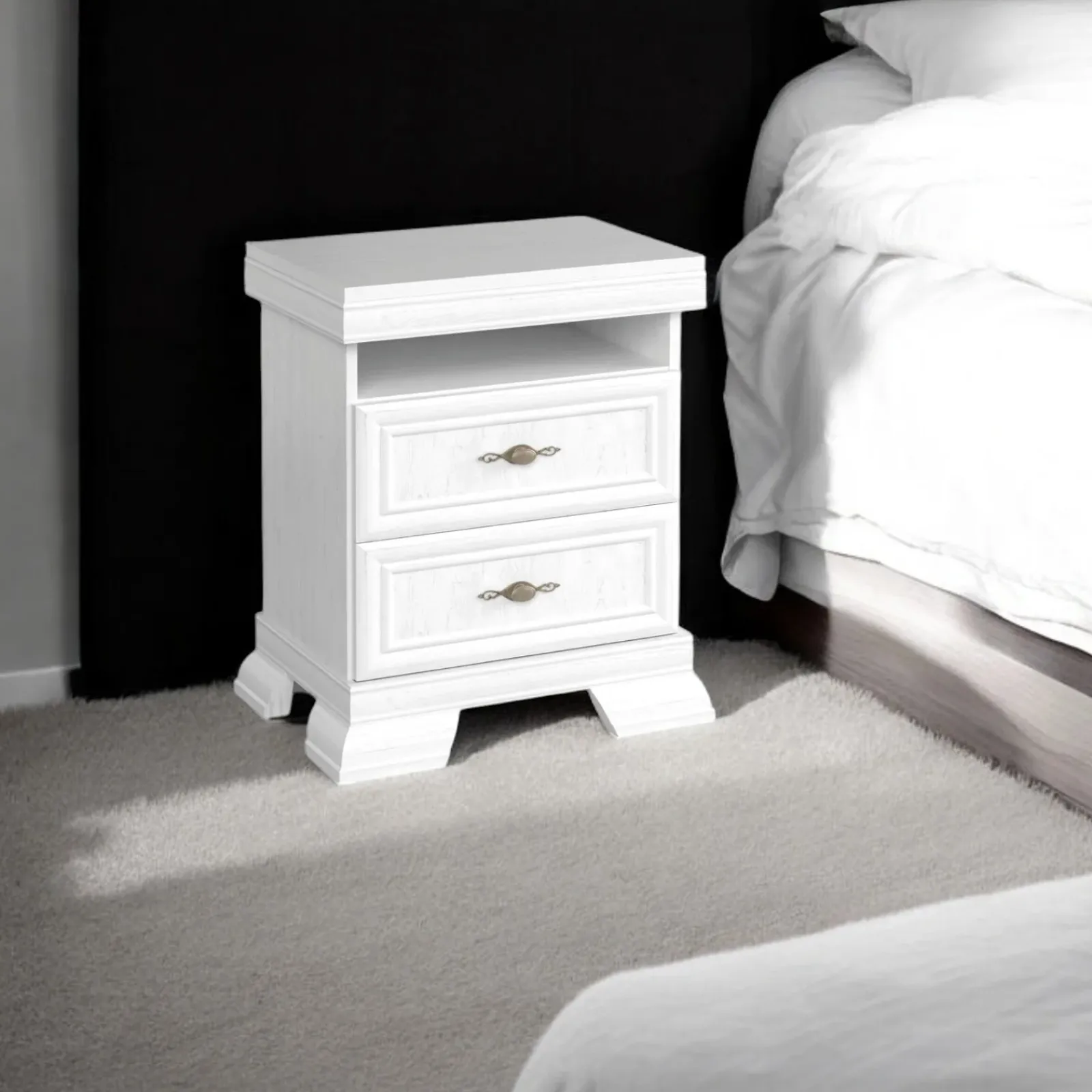 Comodino 58x68cm 2 cassetti bianco frassinato Kelly