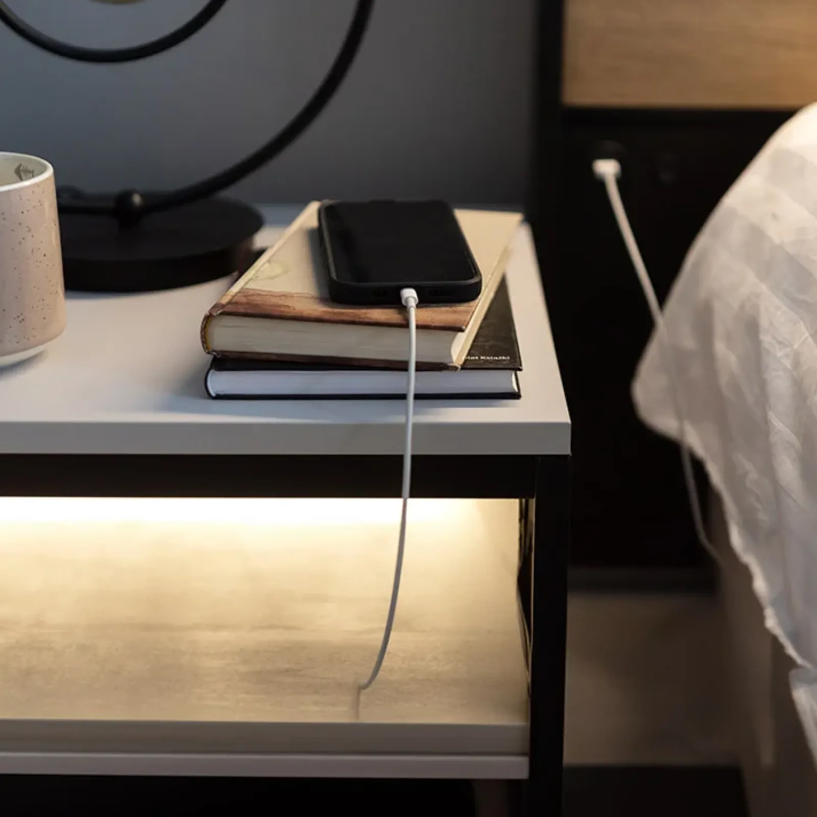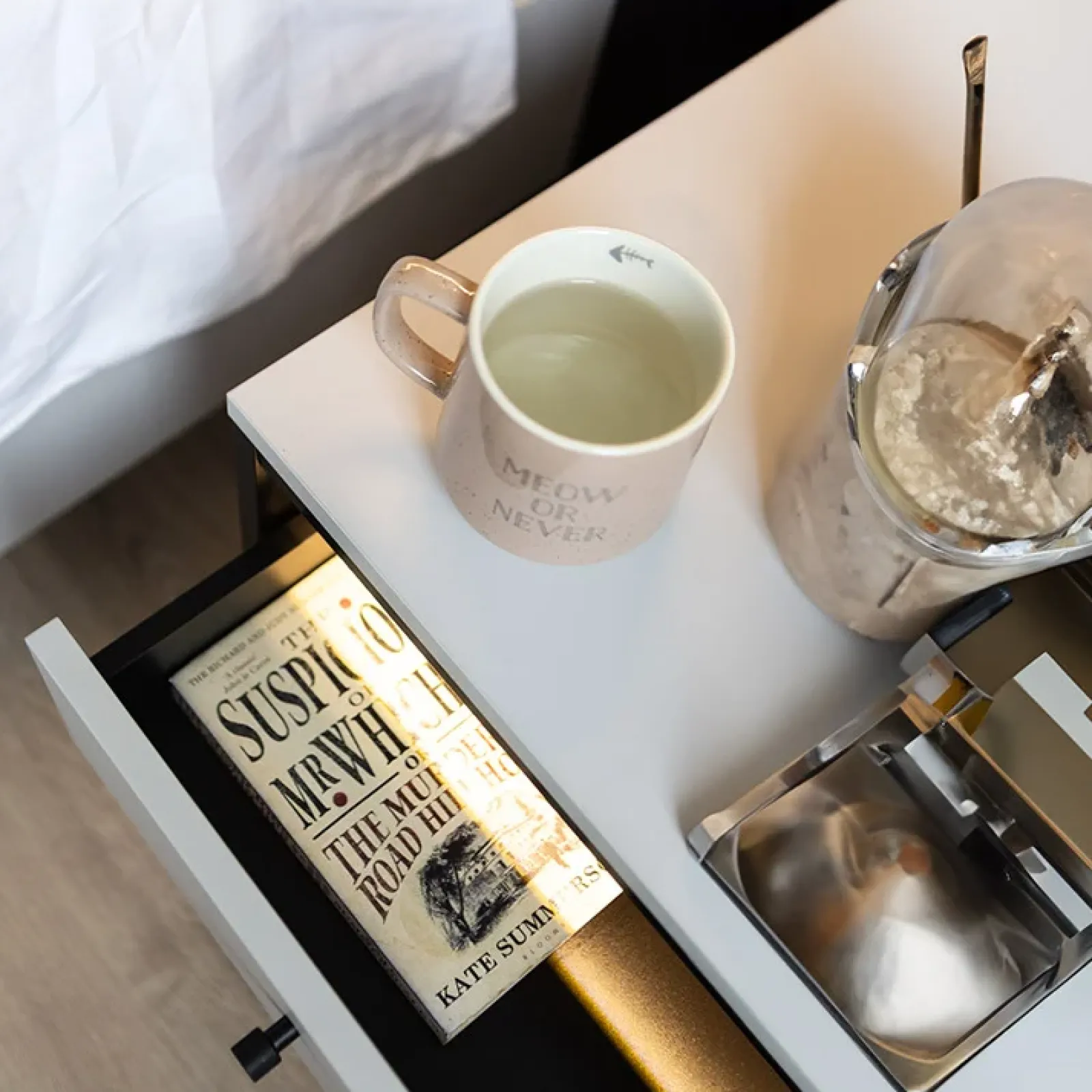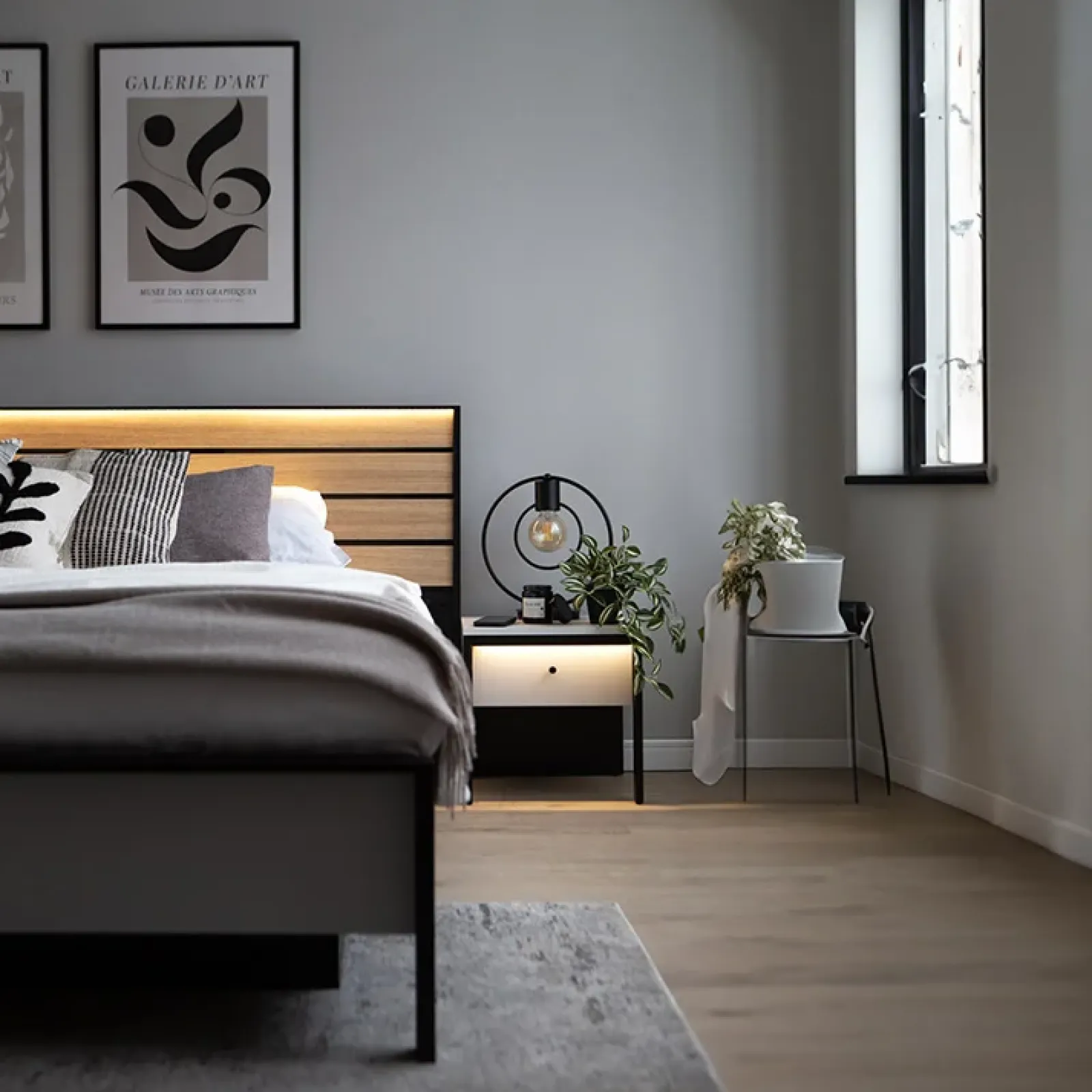 Un tocco distintivo di questo comodino è l’illuminazione a LED, che crea un’atmosfera accogliente e sofisticata. La luce ambientale non solo enfatizza il design moderno del comodino, ma contribuisce anche a un ambiente notturno rilassante, rendendo la tua routine serale più piacevole.