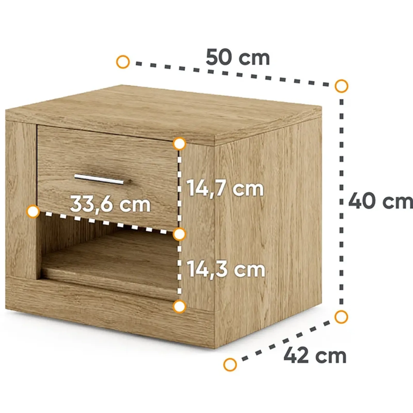 Comodino 1 cassetto 50x40cm rovere Ombra