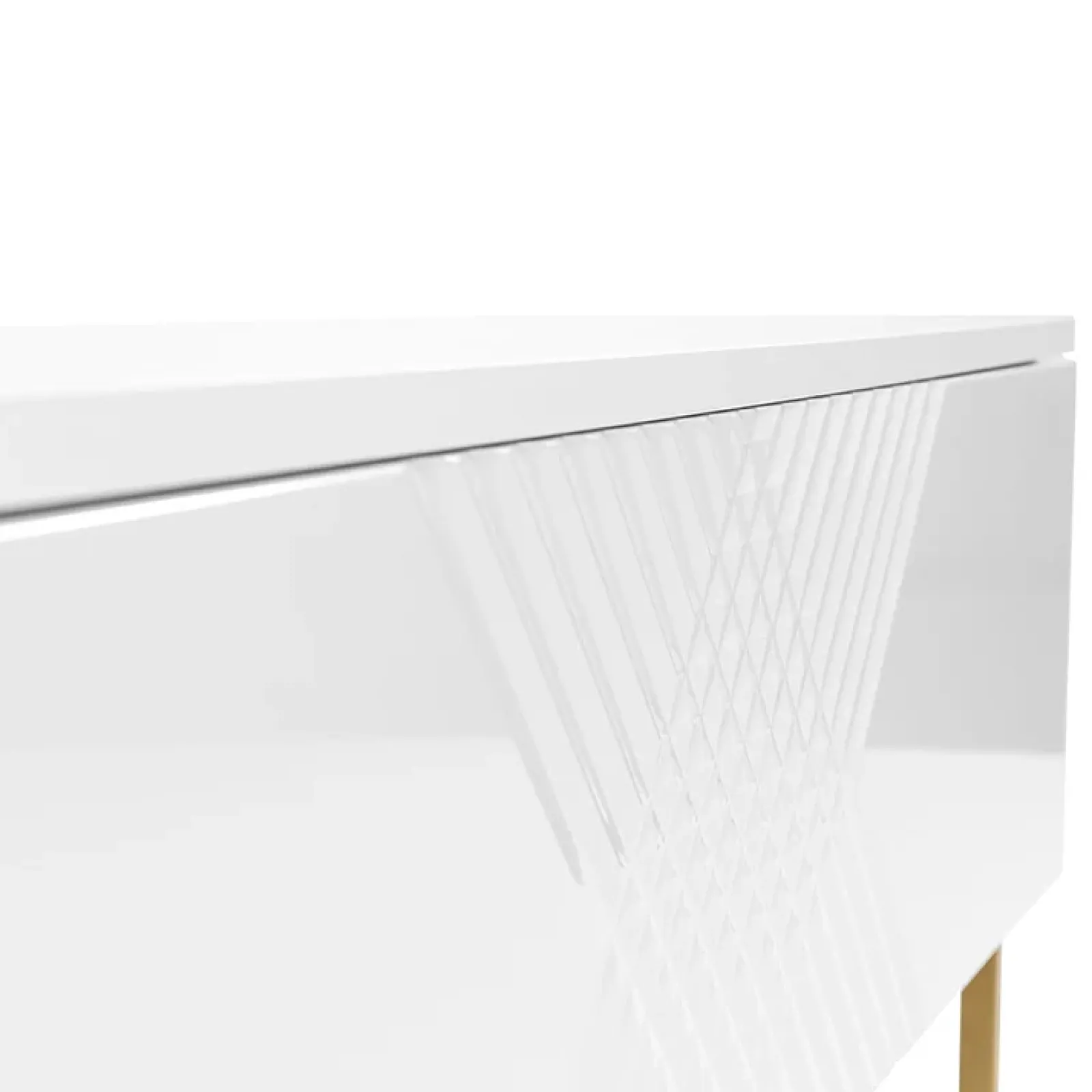 Il comodino Marisa è caratterizzato da un design moderno con un raffinato decoro sulla parte frontale e una stuttura di colore dorato, doti che faranno risplendere la tua camera da letto!