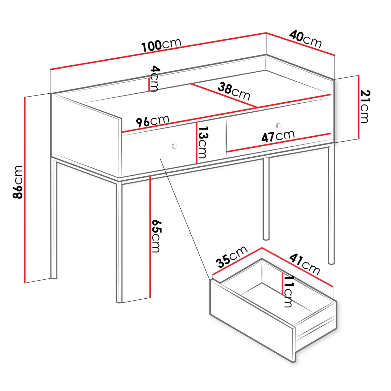 Consolle 100x86cm design moderno 2 cassetti bianco Pollon