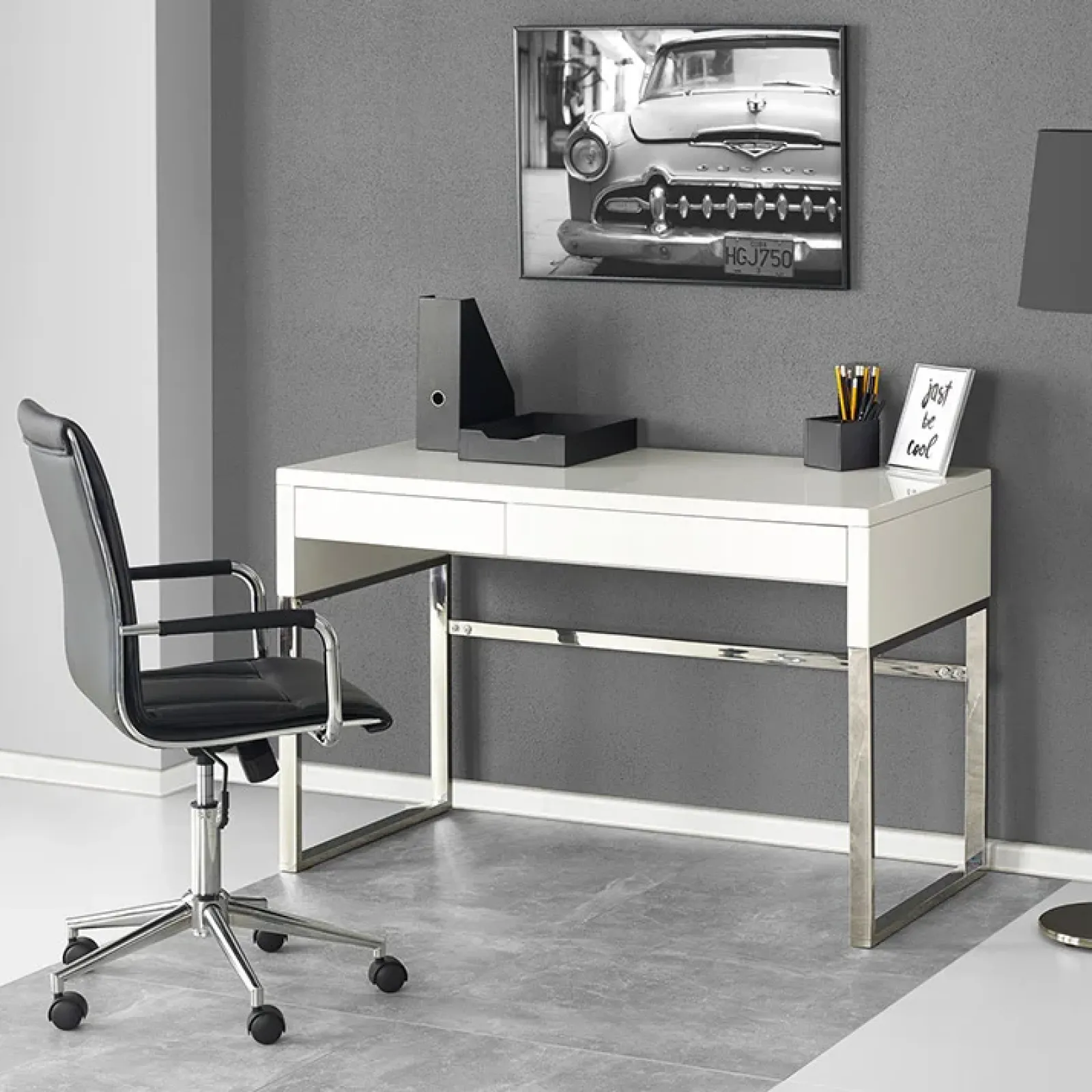 Scrivania ufficio con cassetti 120x76cm bianco laccato lucido Borbone, per lavorare nella comodità della tua casa .